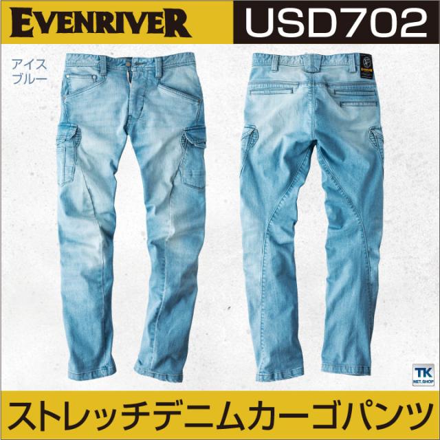 EVENRIVER イーブンリバー デニムパンツ 作業ズボン ワークウェア カジュアル ストレッチブラスト カーゴパンツ 作業着 作業服 春夏 秋冬 er-usd702
