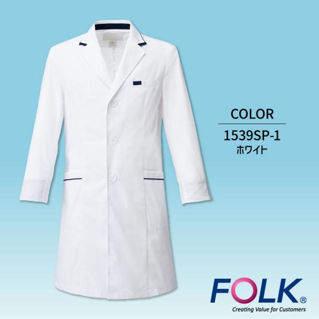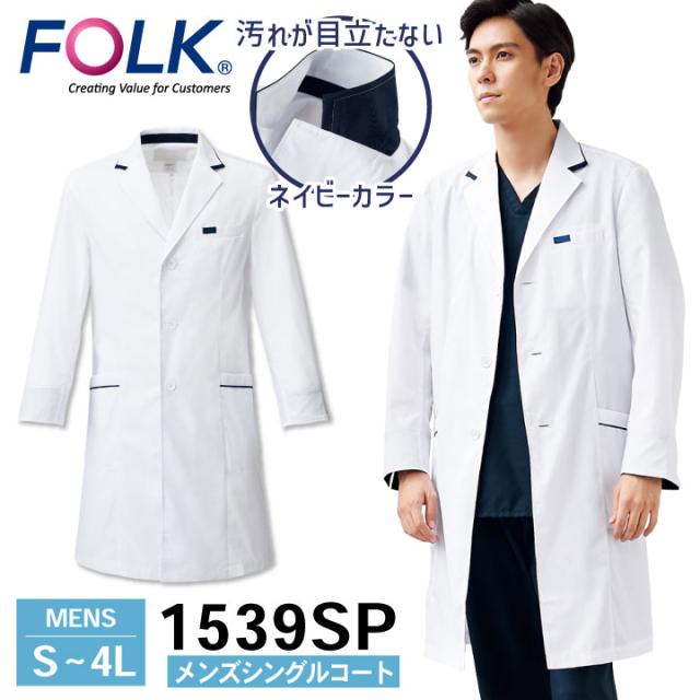 FOLK メンズシングルコート 1539SP ドクターコート 白衣 長袖 診察衣 メンズ 男性 病院 医療 クリニック 調剤薬局 薬剤師 フォーク fo-1539sp