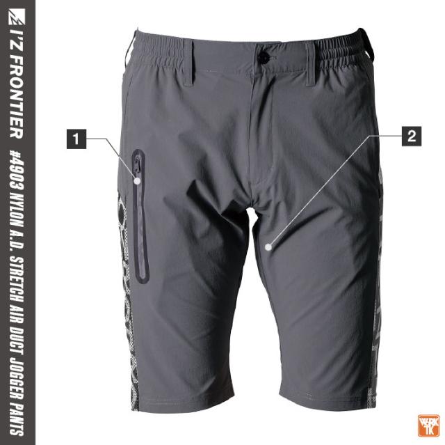 4904 アイズフロンティア 抜群の快適性能を誇るスポーティーテイストのハーフパンツ。 ハイレベルな全方向ストレッチ性能を有するナイロン素材を使用。