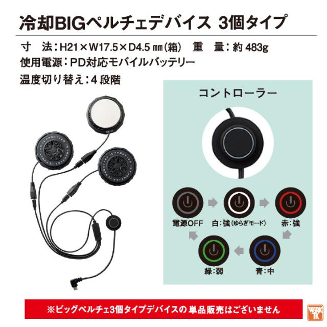 ハイパワーバッテリー専用の直径7cmビッグペルチェデバイス3個タイプ。