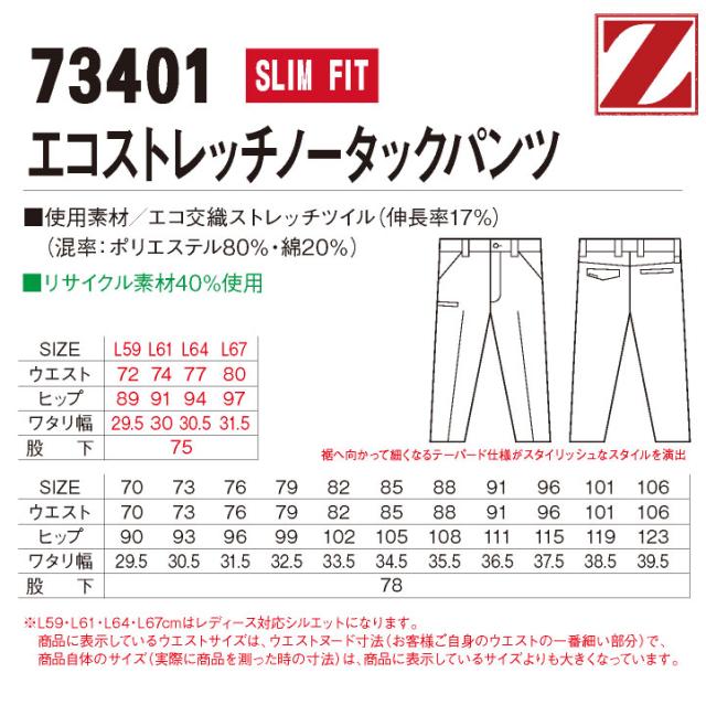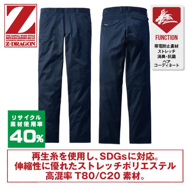 自重堂 Z-DRAGON パンツ ノータック 秋冬 メンズ レディース ストレッチ エコ SDGs 消臭 抗菌 帯電防止 JIST8118 作業服 仕事服 おしゃれ ズボン jd-73401