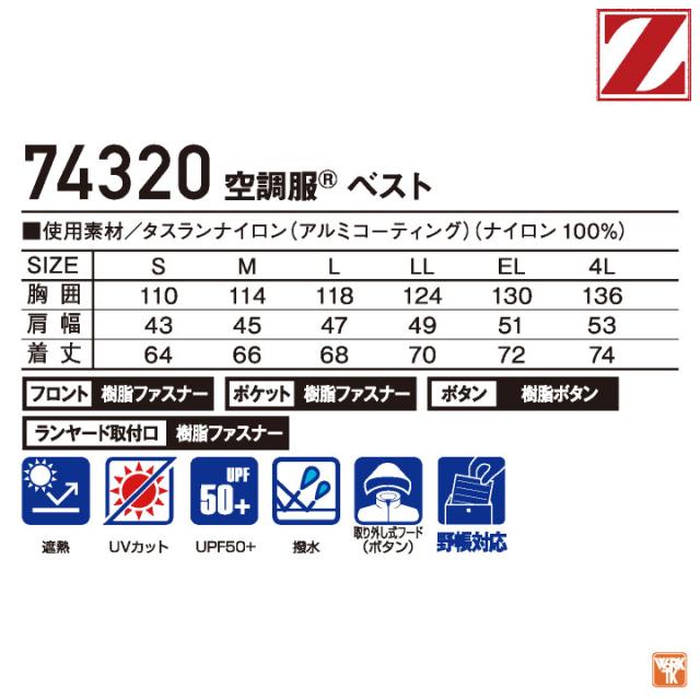74320 自重堂 空調服 ベスト 春夏 工事現場 建設業 農作業 ガーデニング アウトドア おすすめ 制服 人気 ブラック シックグレー スモークグレー スモークカーキ