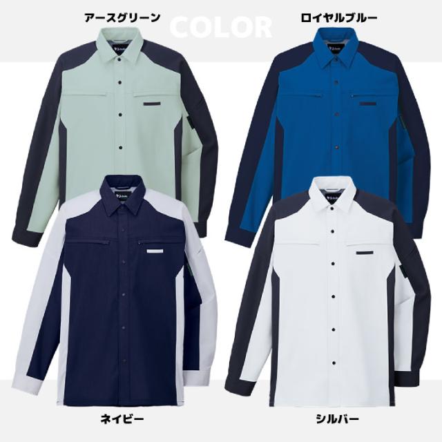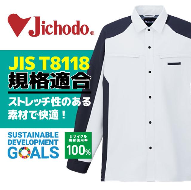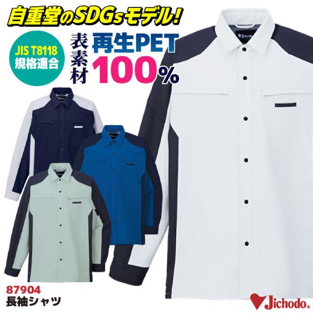 自重堂 長袖 シャツ 春夏 上着 メンズ レディース 再生PET リサイクル素材 帯電防止 JIST8118規格適合 SDGs エコ ストレッチ 仕事服 作業着 作業服 おしゃれ シンプル jd-87904