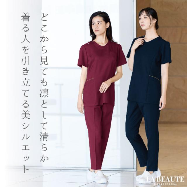 72053 パンツ ネイビー ブラック ベージュ ワイン ユニフォーム オフィス サロン クリニック 女性 シンプル 華やか かわいい きれいめ すっきり 上質感 爽やか