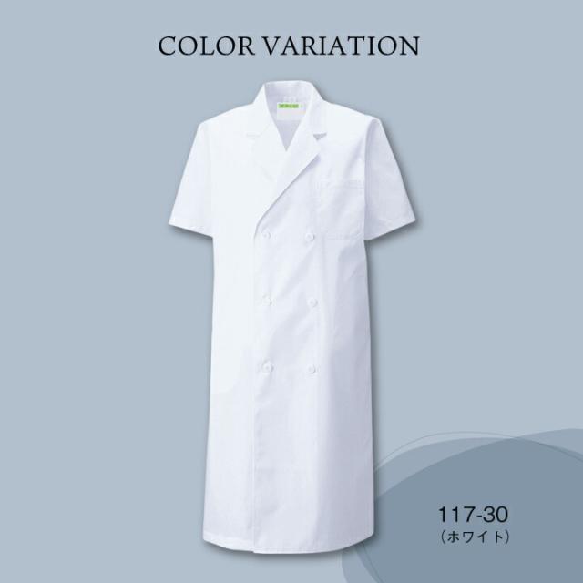白衣 メンズ 実験 診察衣 研究用 アプロン 安い 人気 ダブル 半袖 カゼン 117-30ドクターコート 男性 KAZEN 医療用 病院 医師 獣医 ドラッグストア 薬局 薬剤師 栄養士 研修 実験用白衣 kz-117b