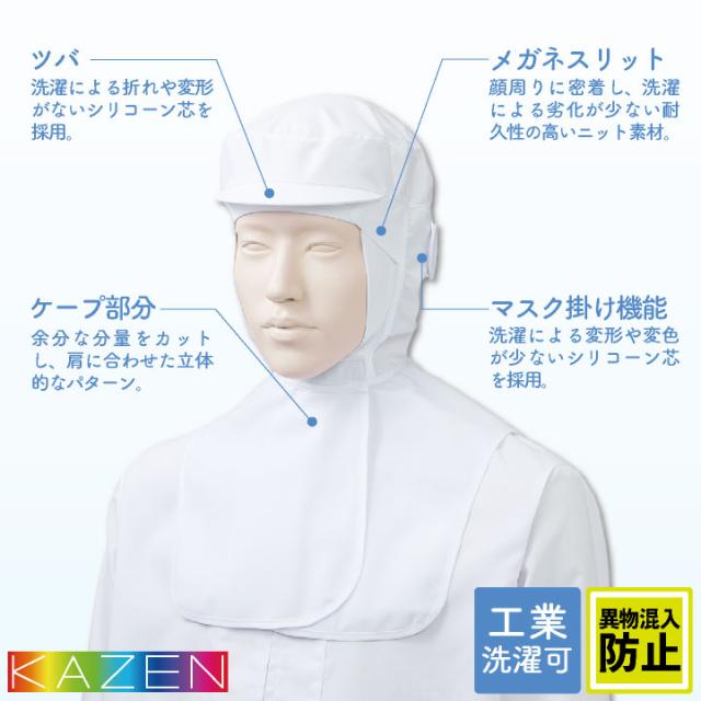 カゼン 衛生帽子 ツバ付 ケープ付 メンズ レディース 吸汗速乾 工業洗濯可 食品工場 白衣 調理白衣 食品白衣 衛生白衣 衛生衣 衛生管理 食品加工 食品製造 厨房 飲食 フードユニフォーム 制服 フード帽子 キャップ KAZEN ネコポス kz-kzn481-10