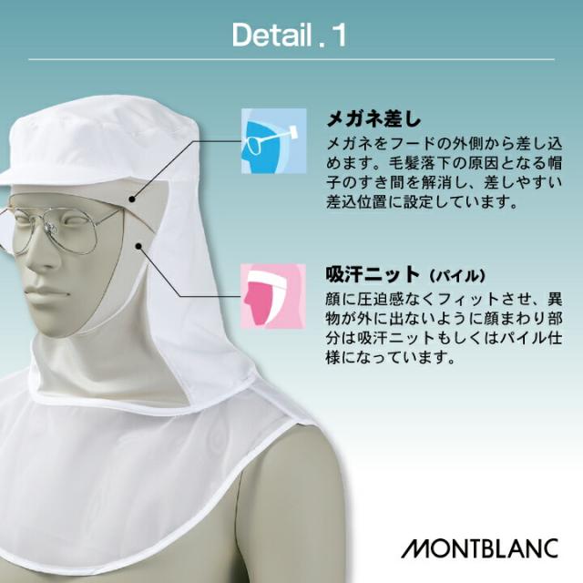 住商モンブラン 衛生帽子 頭巾帽子 ケープ付 食品工場 白衣 調理白衣 食品白衣 衛生白衣 衛生衣 衛生管理 食品加工 食品製造 厨房 フードユニフォーム キャップ 制服 ネコポス sm-9-1501