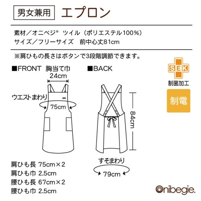 OV5001 エプロン X型 たすき掛け 男女兼用 制菌加工 制電 オニベジ ソムリエ レストラン カフェ 飲食店 ベーカリー パン屋 ショップ 店員 接客 サービス 住商モンブラン 小松マテーレ ネコポス sm-ov5001