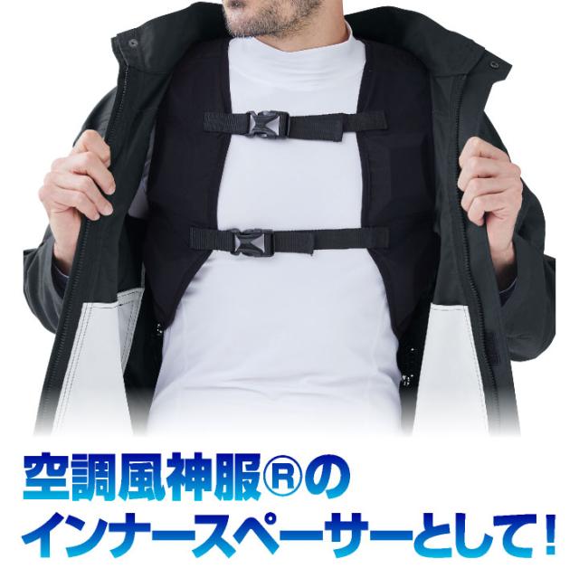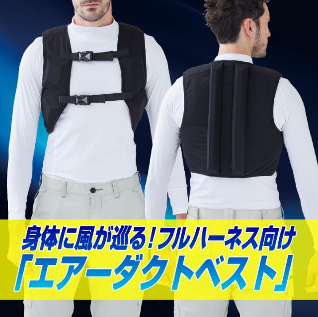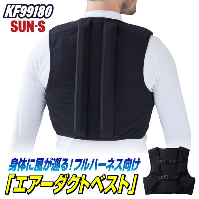 KF99180 サンエス ハーネスを装着しても、体に風が巡る空間が確保される!エアーダクトベスト。 ブラック フリーサイズ
