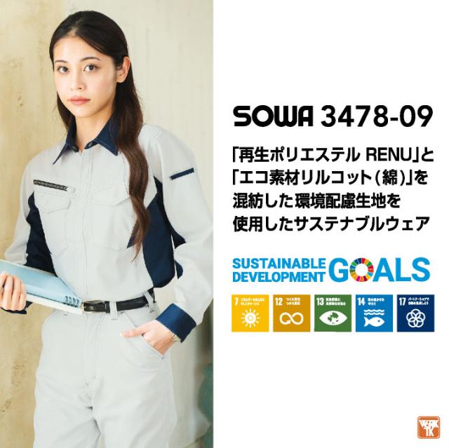 SOWA 3478-09 レディーススラックス SDGsに貢献する、環境に配慮したエコ素材ワークウェア
