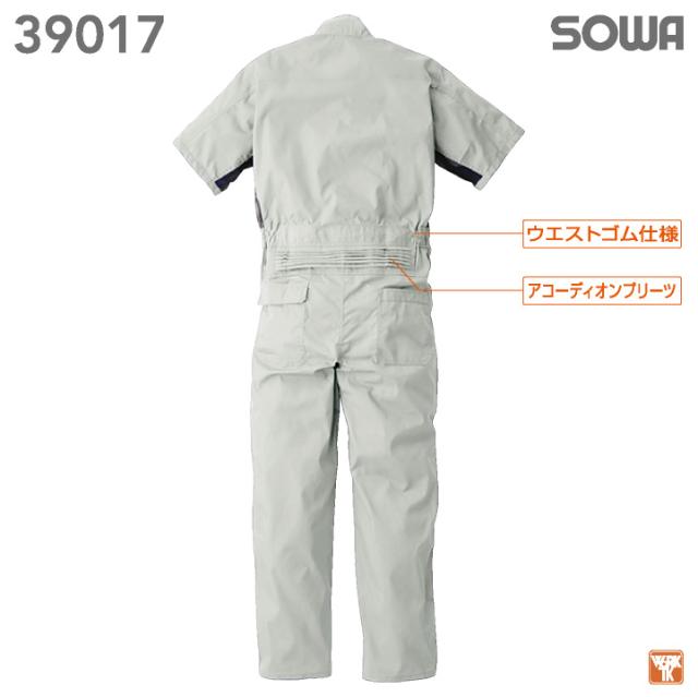 SOWA 39017 半袖つなぎ 風が通る脇メッシュ仕様で、蒸れにくい! 定番素材のT/Cを使用。