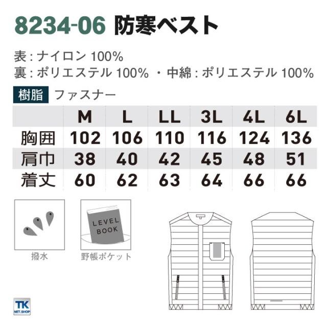 8234-06 防寒 ベスト クルーネック インナー アウター 2WAY 撥水 軽量 ポリエステル 秋 冬 スタイリッシュ カジュアル 暖かい 桑和 SOWA