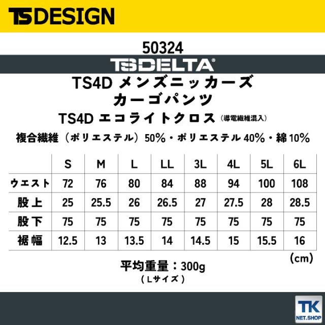 50314 TS DESIGN TS4Dメンズニッカーズカーゴパンツ 春夏 ストレッチ 高通気 帯電防止 メンズ おしゃれ 作業着