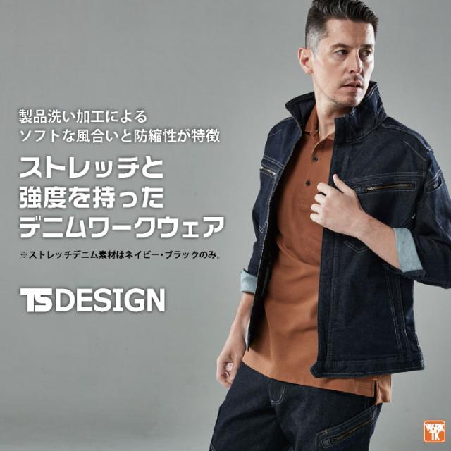 TS-DESIGN ジャケット ストレッチデニム 綿100 チノクロス 長袖 ブルゾン ジャンパー 春夏 秋冬 作業服 作業着 ワークウェア メンズ レディース カジュアル かっこいい SS S M L LL 3L 4L 制服 ユニフォーム TSデザイン TOWA 藤和 tw-5116