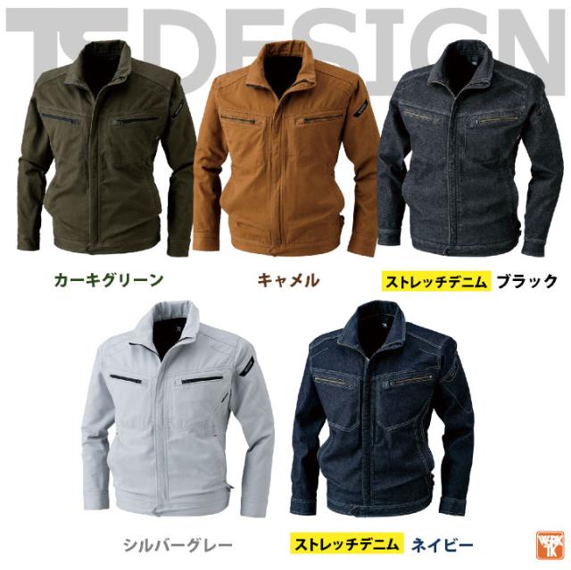 5116 TS-DESIGN ジャケット ストレッチと強度を持ったデニム&チノクロス綿100%ワークウェア シルバーグレー ネイビー カーキグリーン キャメル ブラック
