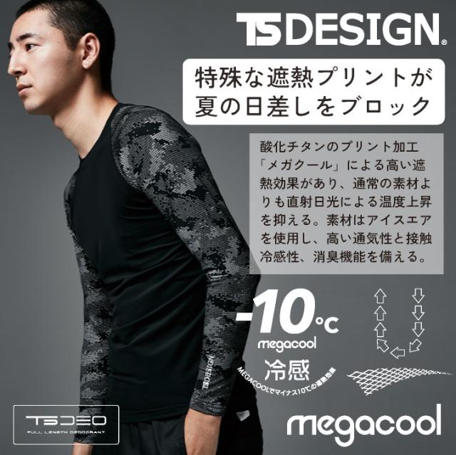 TS DESIGN 長袖インナー 春夏 秋冬 インナー メンズ レディース 軽量 メッシュ 高通気 UVカット 消臭 吸汗速乾 接触冷感 仕事服 おしゃれ ネコポス tw-8005