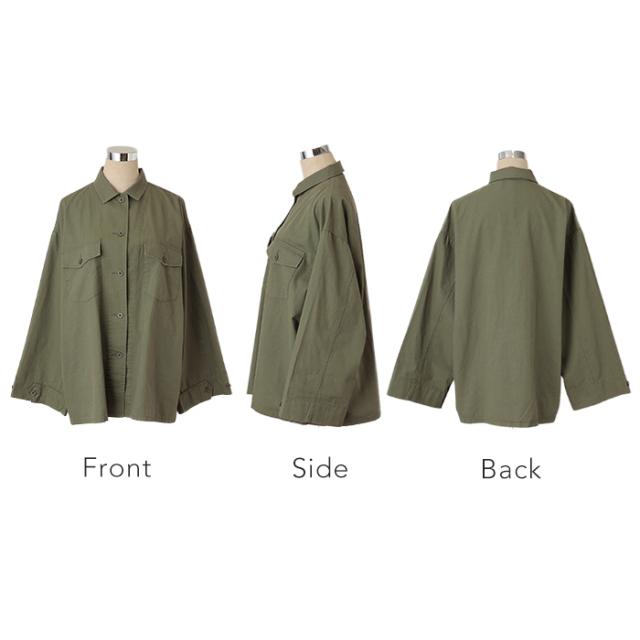 ミリタリージャケット オーバーシャツ ロング コットン ゆったり ドロップショルダー メンズライク メンズライクシャツ ロングシーズン ワイド ワイドスリーブ ワイドスリーブシャツ スタンドカラー 襟付き 襟シャツ チュニック丈 ドルマンシャツ ドルマントップス ナチュラル お尻が隠れる 羽織り アウター 抜き襟 抜き襟シャツ 前開き 二の腕カバー ミリタリージャケット ジャケット モッズコート モッズ ロングジャケット ミディアム丈 ミディ丈 ミリタリーコート ライトジャケット CPO 抜け感 こなれ こなれ感 華奢 華奢見え ゆるカジ ゆるい ゆるファッション ラクチン らくちん 楽ちん 楽 動きやすい コットン100% コットン 綿 綿100% 綿100 無地 シンプル ポケット ポケットシャツ フラップポケット 冷え性対策 冷房対策 冷え性予防 日焼け対策 ブルゾン スプリングコート スプリングジャケット 春コート 秋コート 秋アウター スプリングアウター スプリングジャケット スプリング 春アウター コート ジャンパー レディースファッション プラスサイズ 旬 トレンド レイヤード 重ね着 重ね レイヤードコーデ 体型カバー 大きいサイズ プラスサイズ ビッグ ビック big ビックシルエット ビッグシルエット ビックサイズ ビッグサイズ オーバーサイズ オーバー オーバーシルエット 着痩せ 大き目 大きい 大きめ フリーサイズ フリー S M L LL 2L XL 3L XXL LLL ランチ デート お出かけ キャンプ アウトドア フェス 旅行 飛行機 カジュアル ナチュラル 大人カジュアル ベーシック オフィス オフィスカジュアル テレワーク リモートワーク リモート オンライン飲み会 おうち時間 お家時間 着回し 通勤 母の日 プレゼント ギフト 贈り物 クリスマス シンプル 大人 大人カジュアル オトナ 女性 綺麗 綺麗目 きれい キレイ キレイめ キレイメ きれいめ 高見え 上質 上品 20代 30代 40代 50代 おしゃれ お洒落 オシャレ 可愛い かわいい カワイイ カッコいい 格好良い カッコイイ ブラック グリーン カーキ 緑 緑色 ブラック 黒 黒色 春 夏 秋 冬 春夏 秋冬 HUG.U HUGU ハグユー はぐゆー