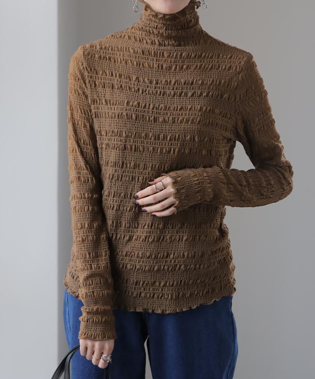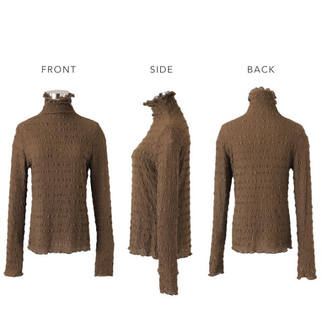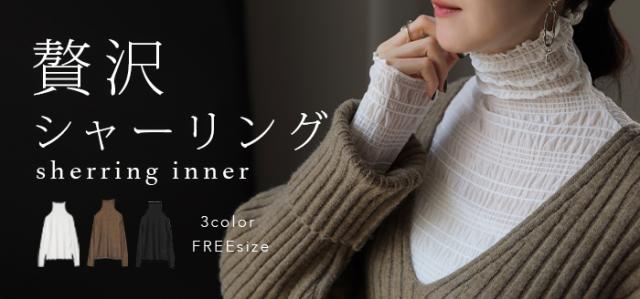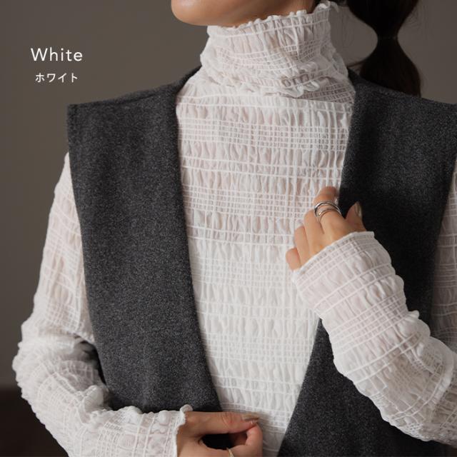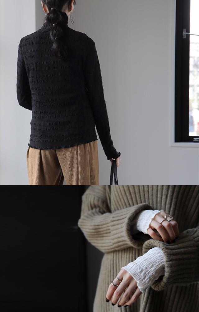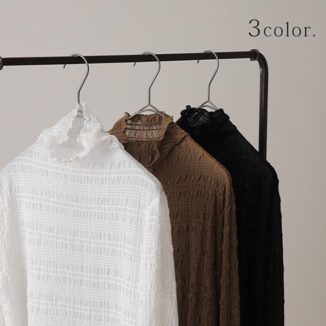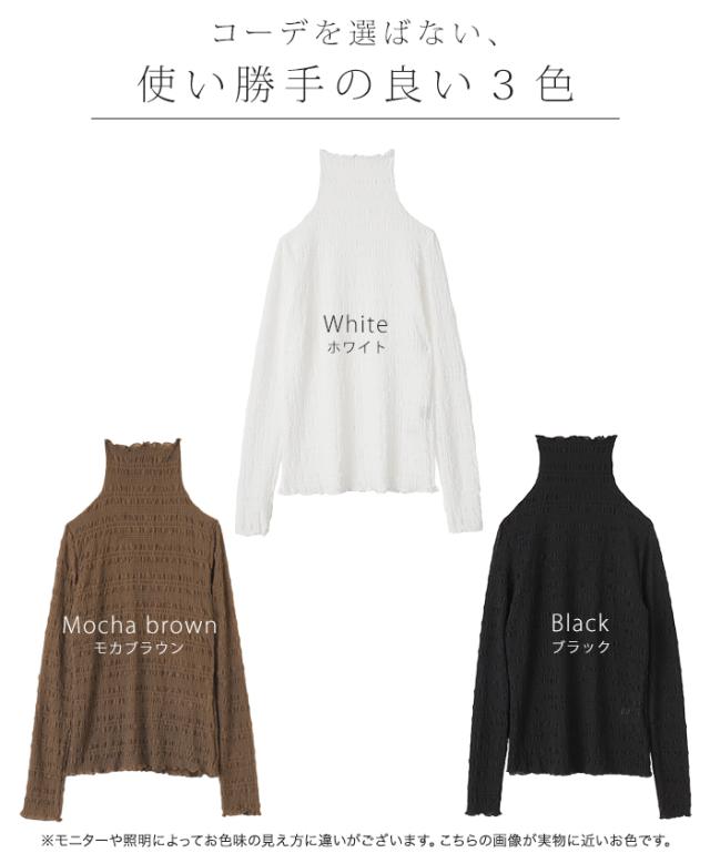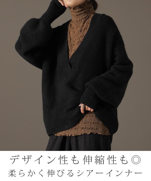 窮屈感なし「 くしゅっと立体感。」シアーインナー レイヤード トップス レディース シャーリング 肌隠し 無地 立体 シアー インナー タートル メロウ 長袖 重ね着 タートル きれいめ 体型カバー タートルネック 黒 白 冬 秋 HUG.U 秋新作