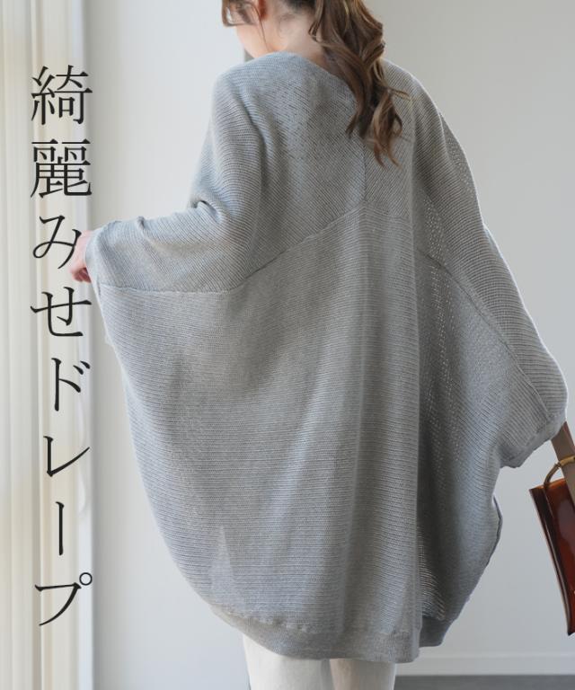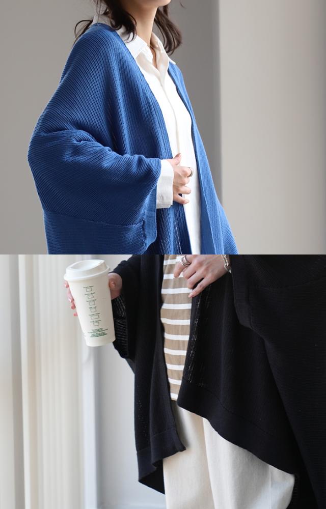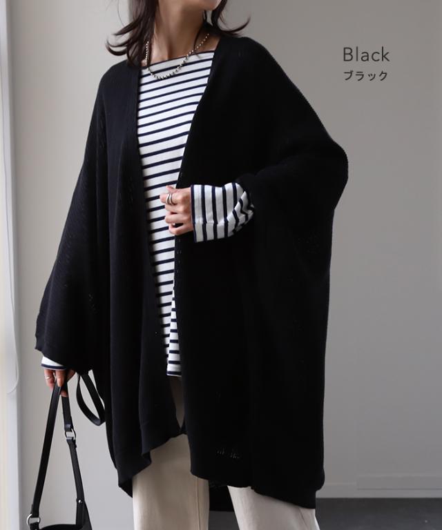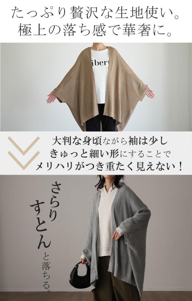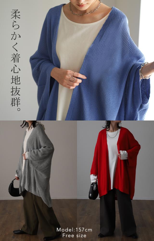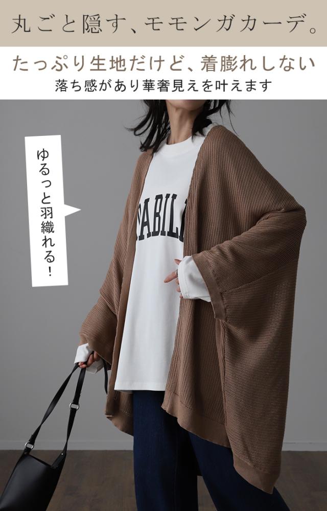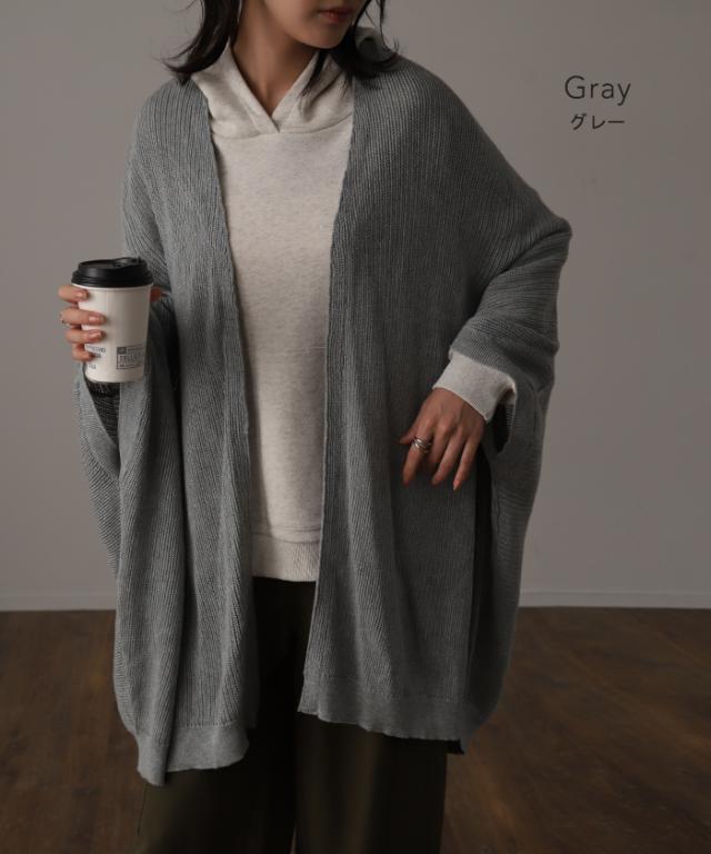 前ボタン無しでサッと着やすいドルマンニットカーディガンです。