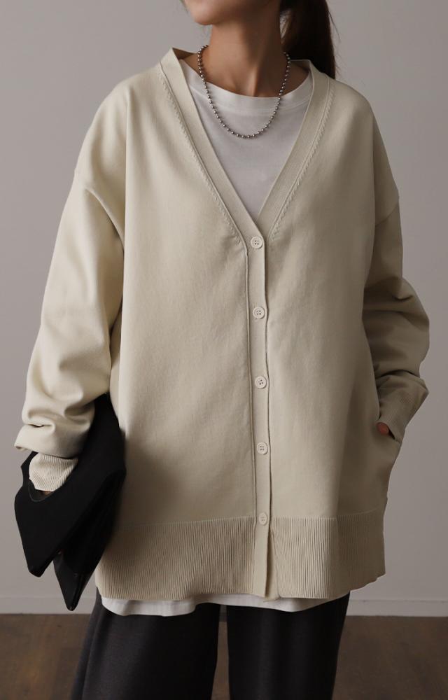 ゆるっとしたオーバーサイズシルエットのニットカーディガンです。