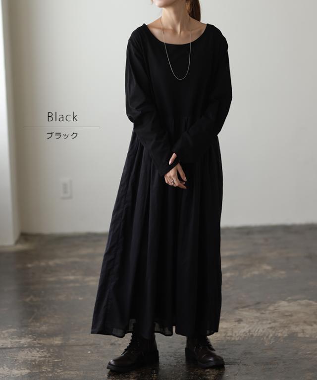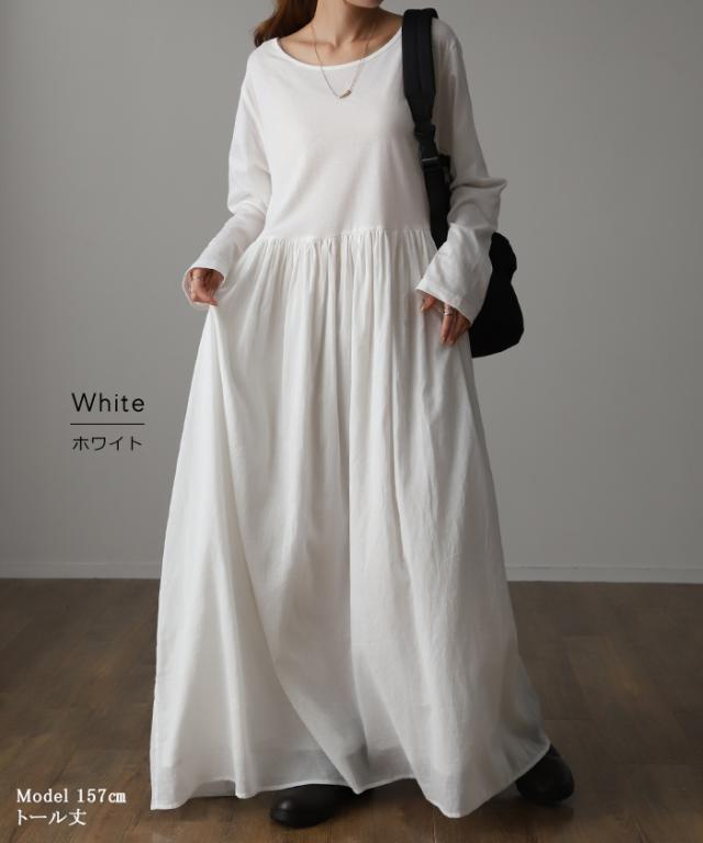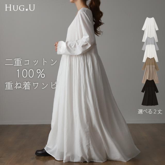 【冬SALE】 締め付けゼロ『 ワンピース型インナー 』2重ガーゼ綿 一部3月中旬入荷 綿100% 長袖 ロングワンピース ロングワンピ ペチコート ペチワンピ ワンピ スカート ロング レディース マキシ 体型カバー レイヤード 重ね着 インナー シンプル 白 黒 冬 秋 HUG.U 秋新作