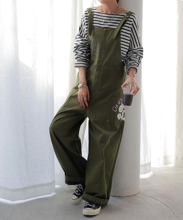 リラックス感のあるシルエットが可愛いワンポイントサロペットです。