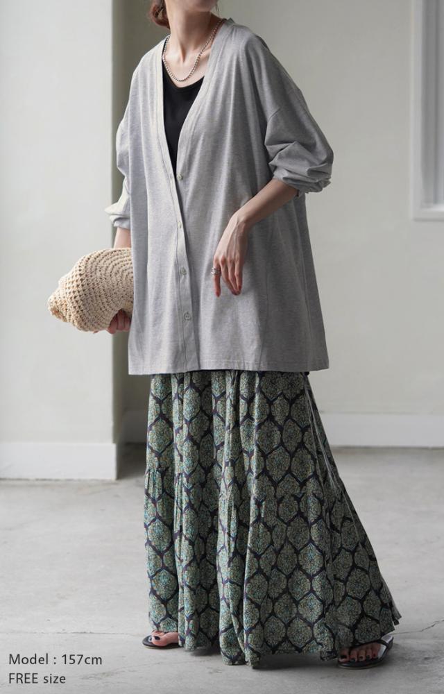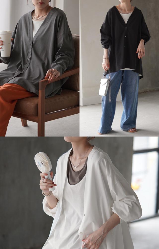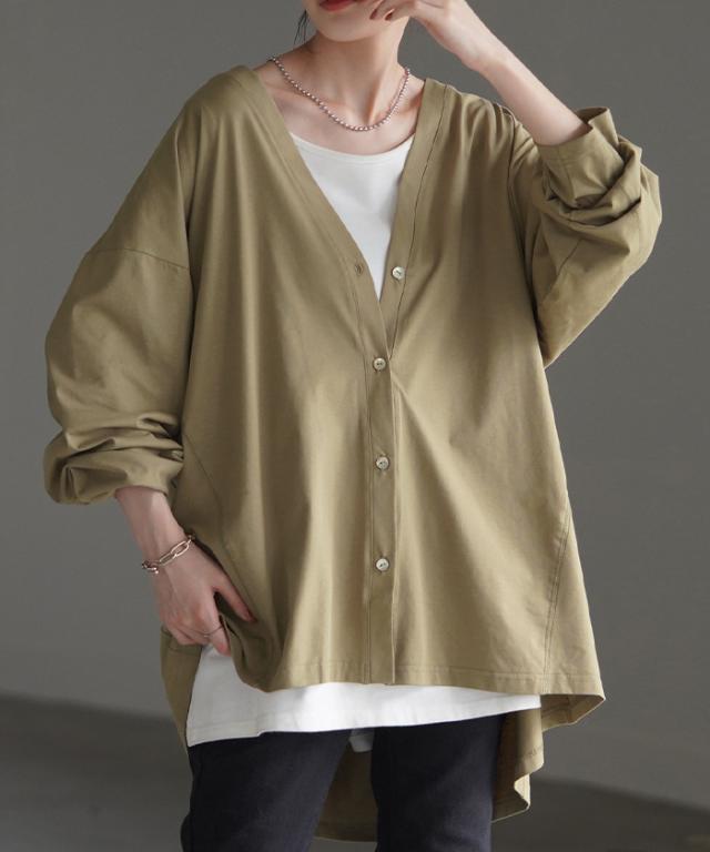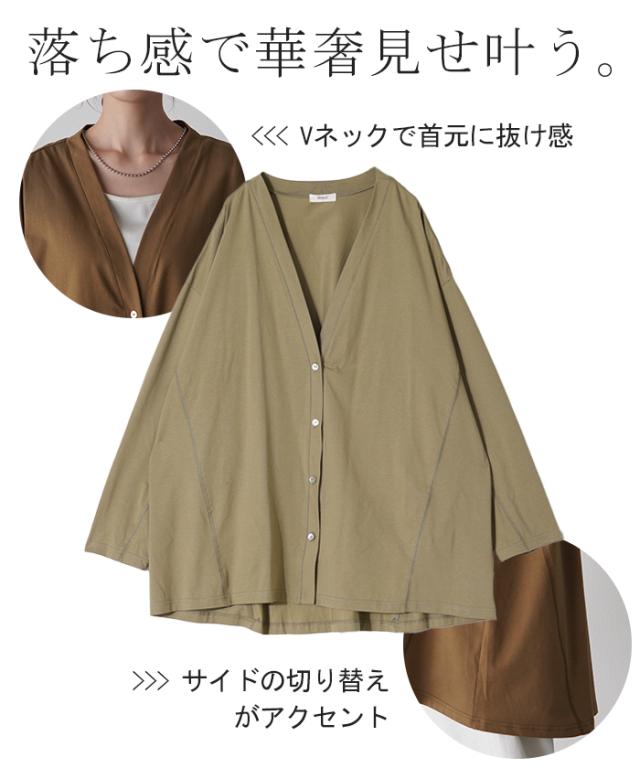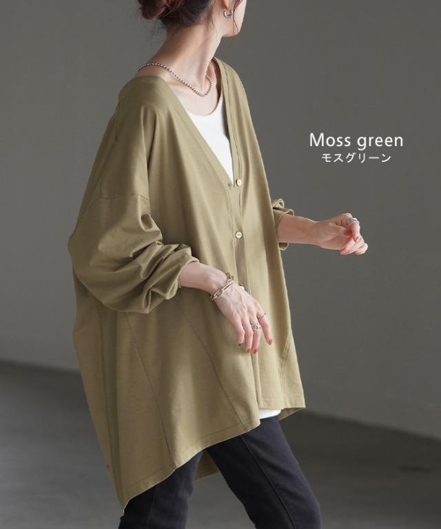 ベーシックなVネック開きの接触冷間カーディガンです。