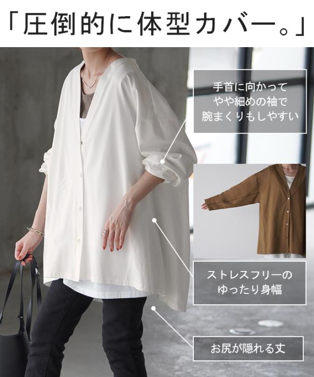 - 袖をまくっても、しっかり止まって落ちてこないのと、外では、紫外線防止で長袖にしますが、暑くならなくて、良かったです。 着丈も、ヒッブが隠れるので、パンツでも着やすいです。
