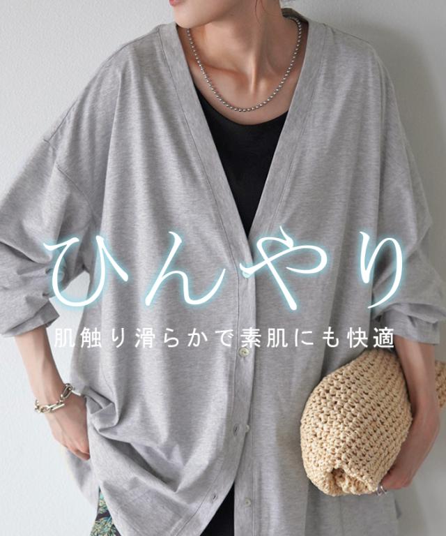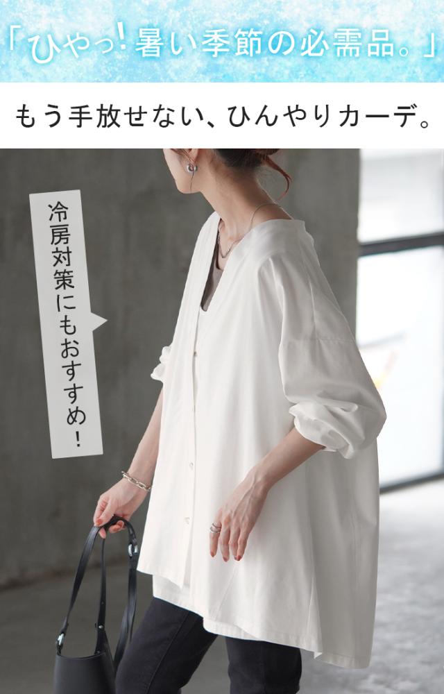 カーディガン 接触冷感 ロング 涼しい レディース トップス アウター カーデ ロングカーディガン 体型カバー チュニック 羽織 冷房対策 お尻が隠れる 長袖 切り替え 冷感 Vネック 変形 薄手 ライトアウター ゆったり 大きいサイズ 白 黒 春 夏 HUG.U 秋新作