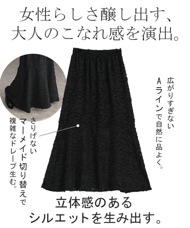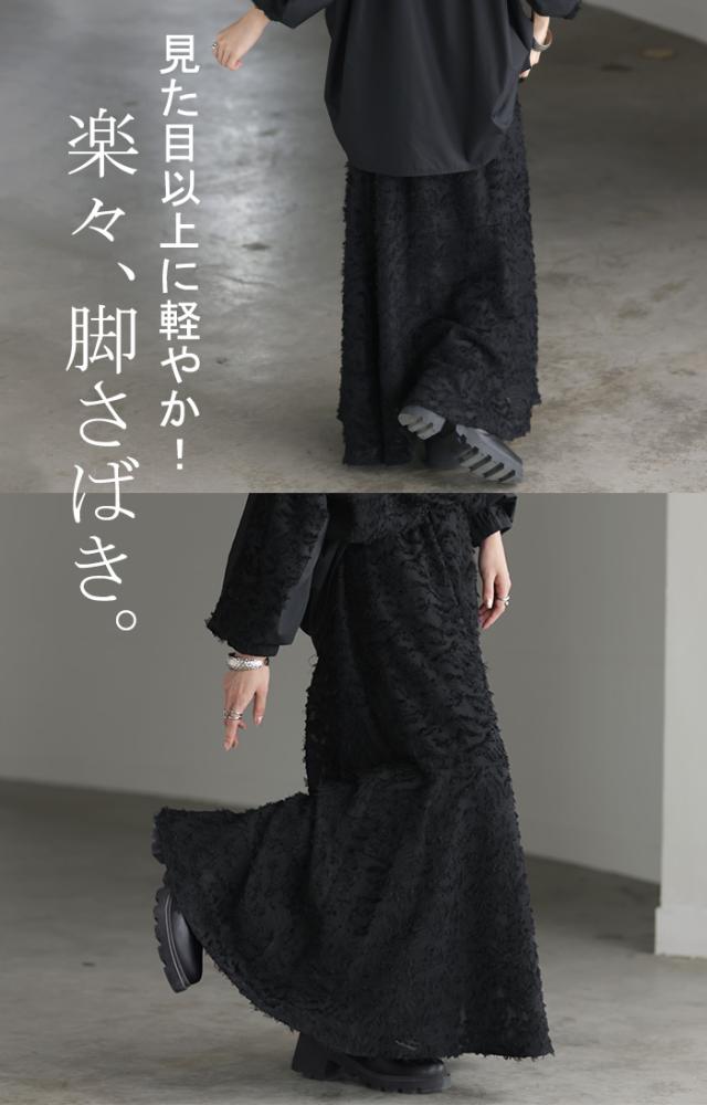 魅力的な揺れ感でスタイリングが華やかになるスカートです。