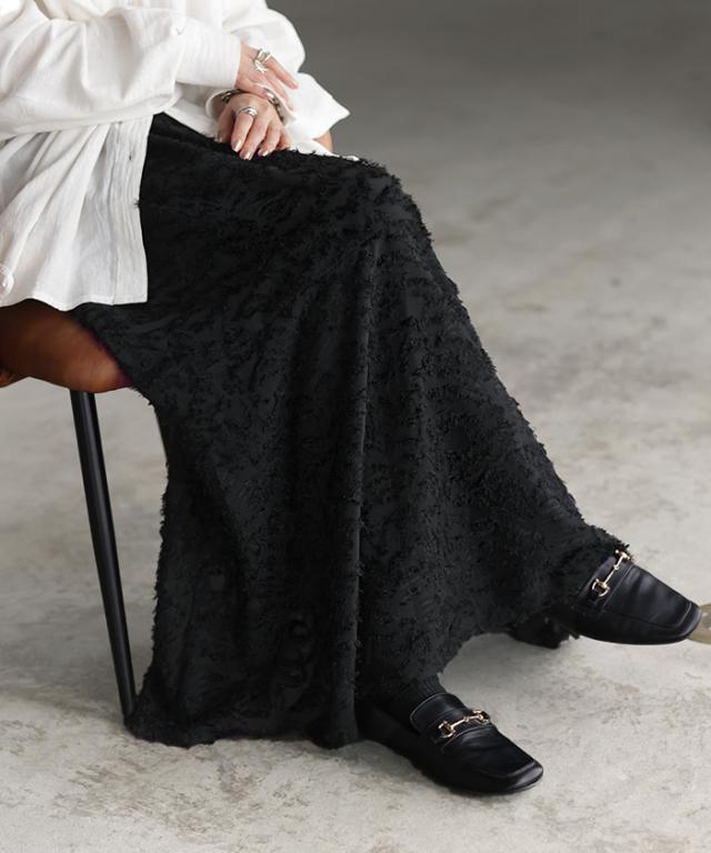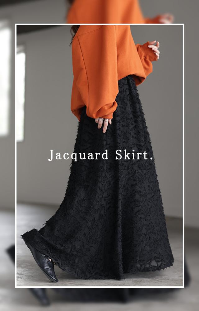 ジャガードで抜け感もあり歩く度に揺れるフレアシルエットは視線を釘付けに◎。
