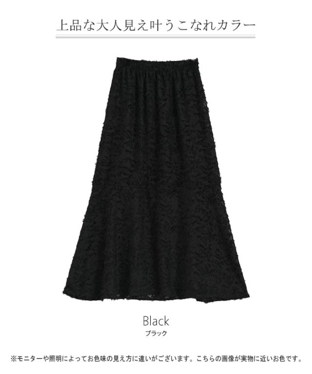 スカート 別売り セットアップ可 シフォン フリンジ 3月下旬入荷 レディース ボトムス ロング ロングスカート マキシ マキシスカート Aライン フレア フレアスカート 柄 シフォンスカート 長い ゴム ボトム ゆったり 体型カバー 大きいサイズ 黒 秋 冬 HUG.U 秋新作