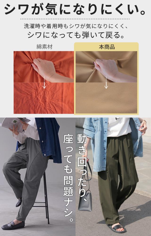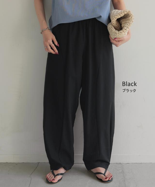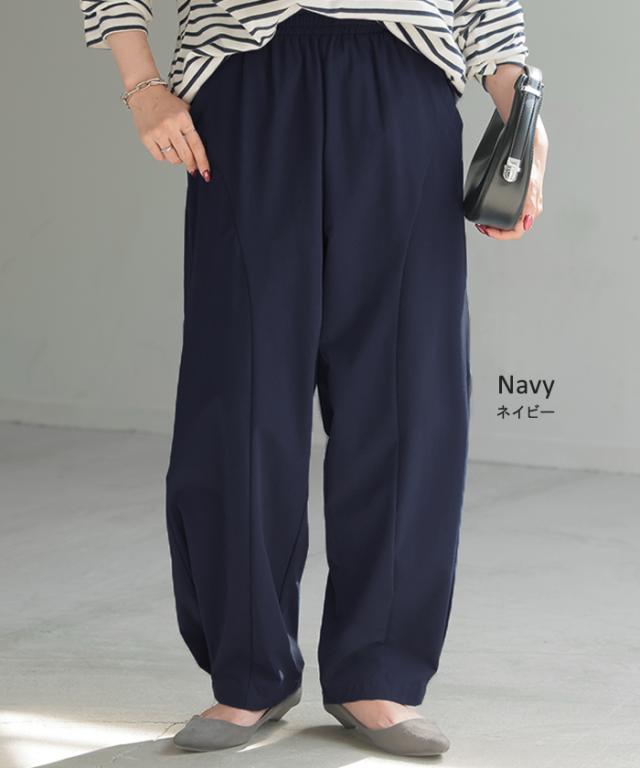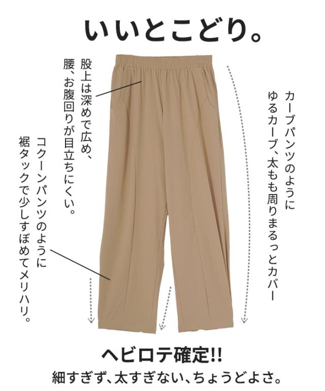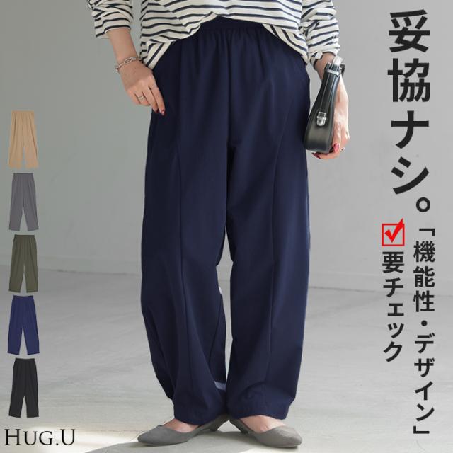 パンツ カーブパンツ ワイド レディース ボトムス ボトム シワになりにくい ストレッチ ハイウエスト テーパード タック ウエストゴム 無地 軽量 軽い ロング ロングパンツ カーブ ライン コクーン 大きいサイズ 体型カバー 黒 グレー 春 夏 HUG.U