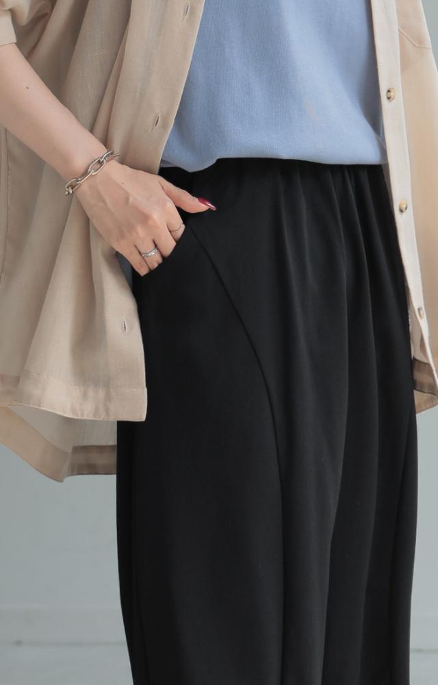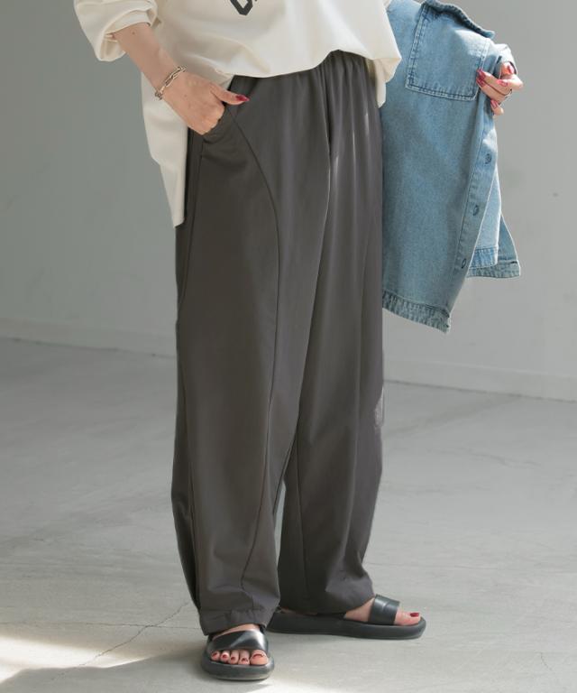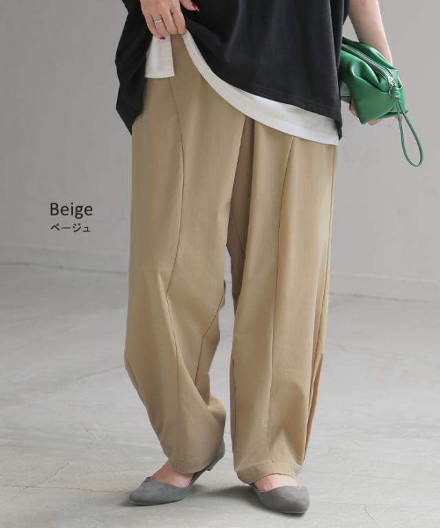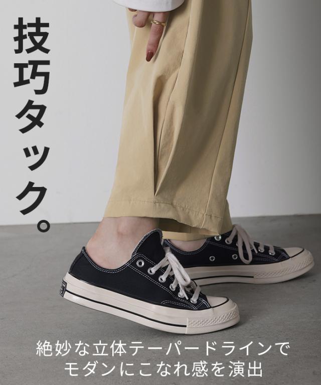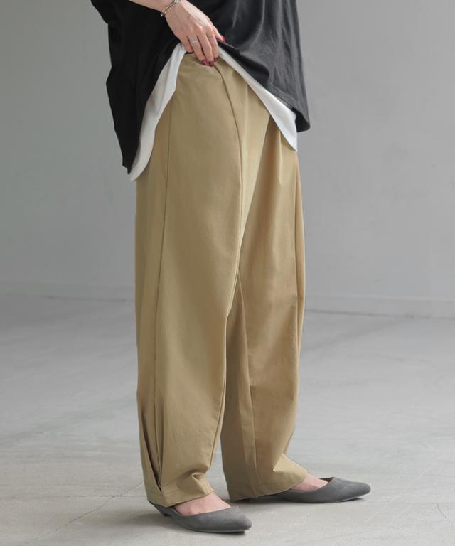 ゆったり×すっきりが叶うシンプルに映える裾タックパンツです。