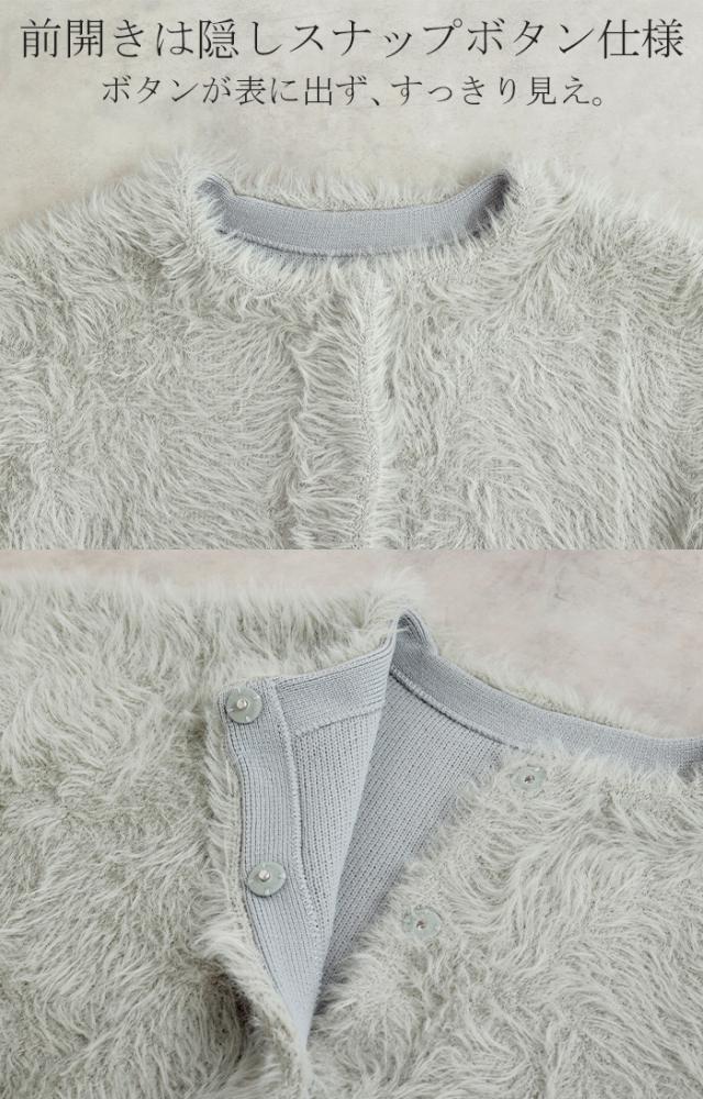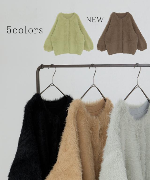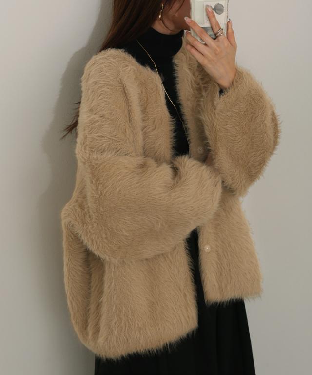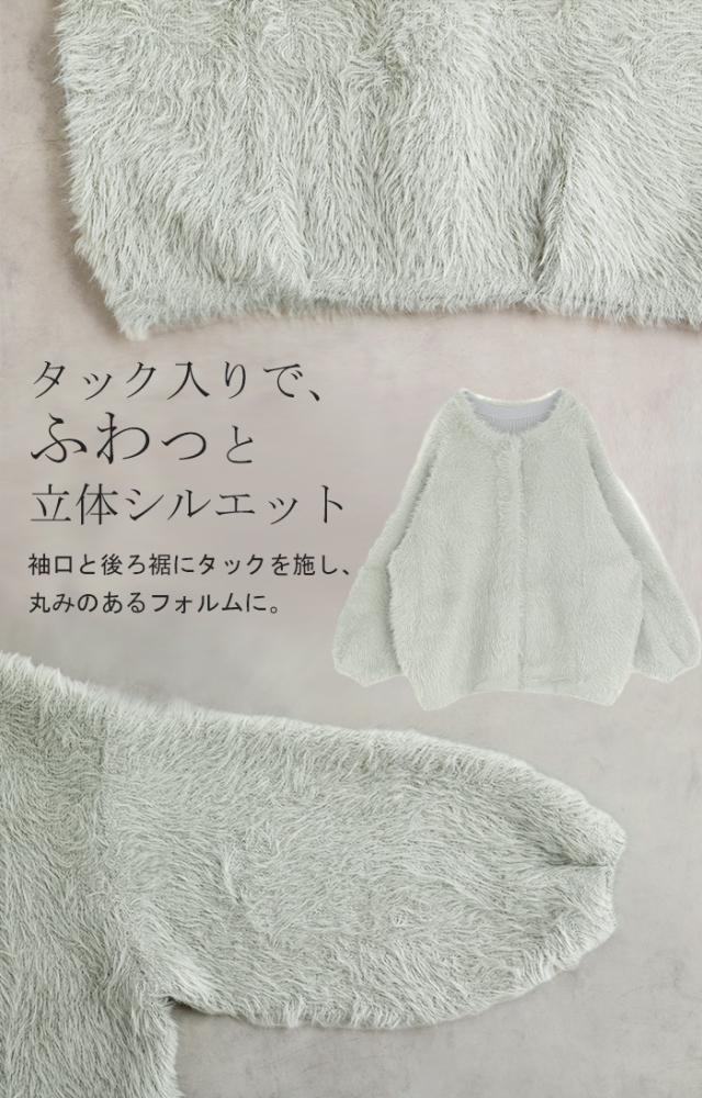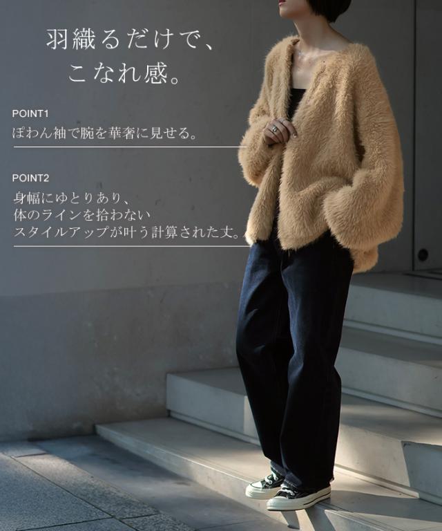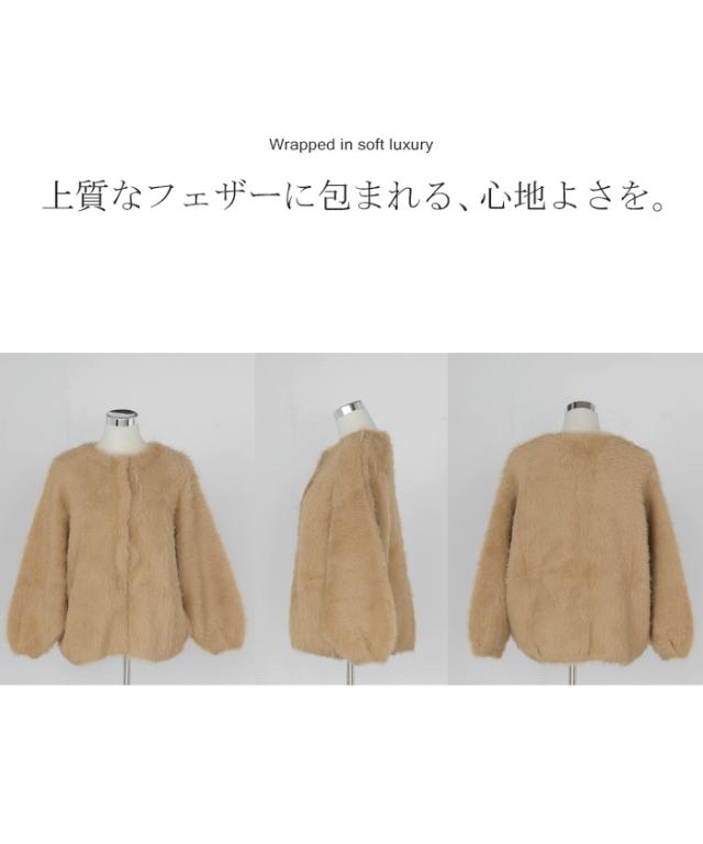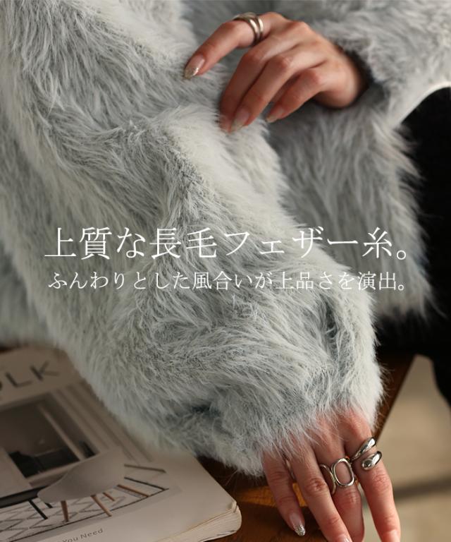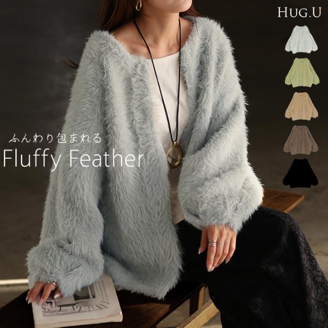 羽織るだけで気分が上がるふわふわフェザータッチのカーディガンです。