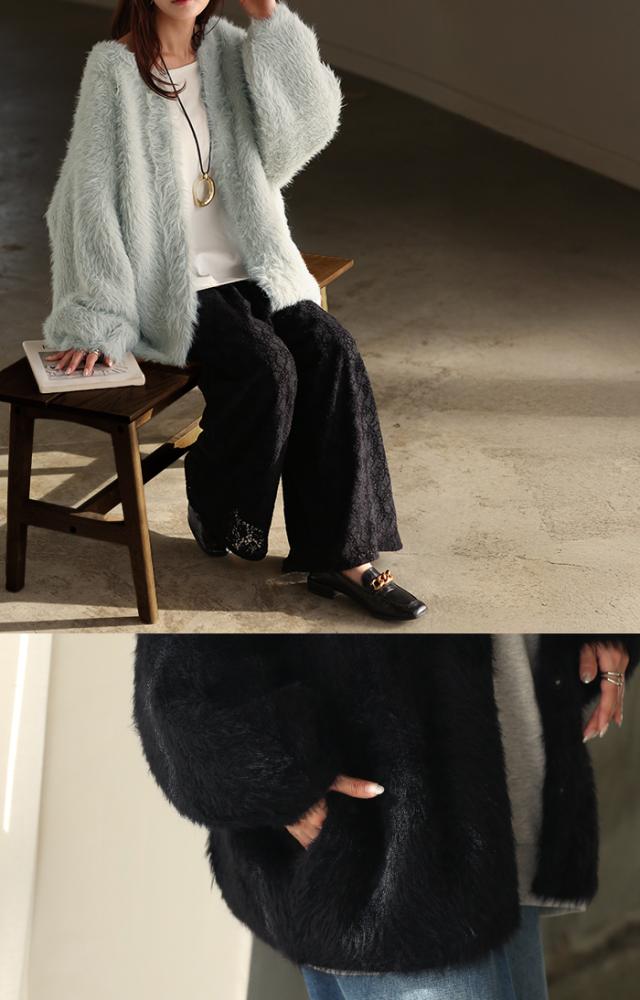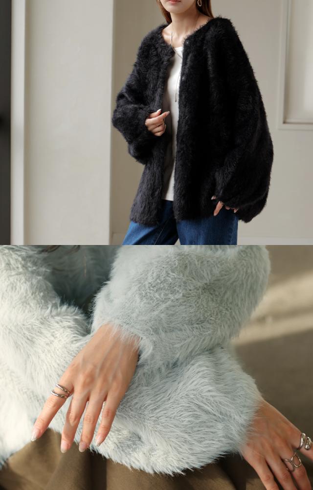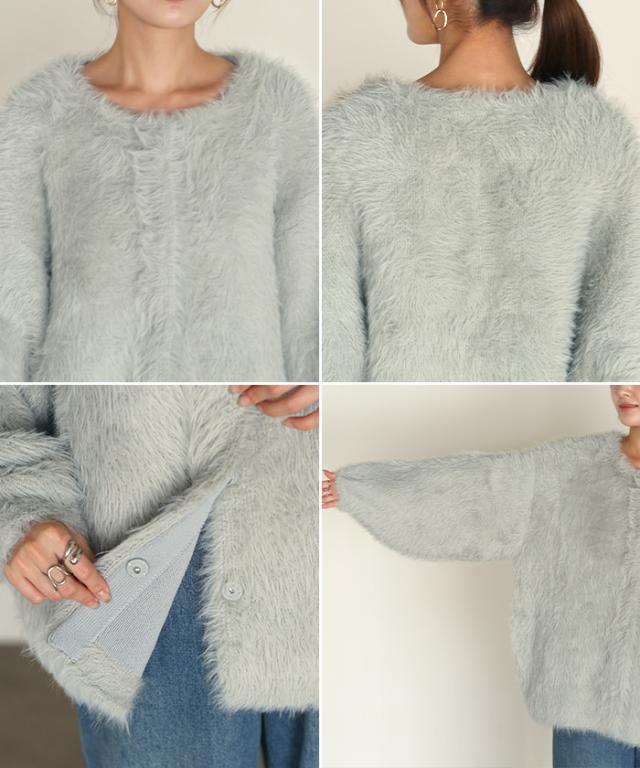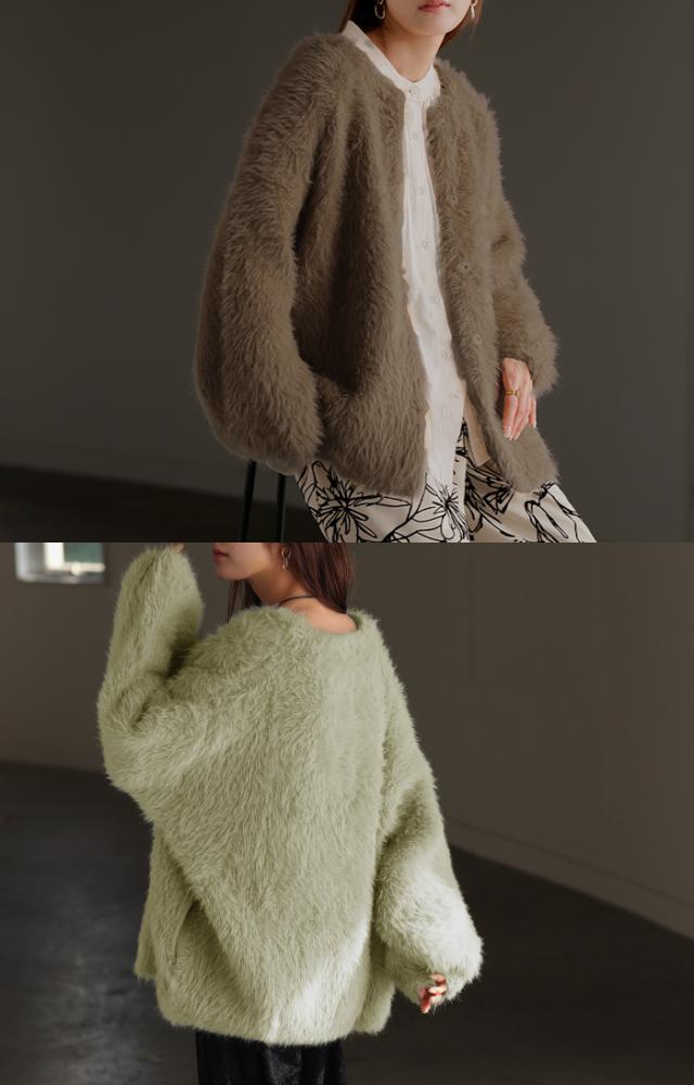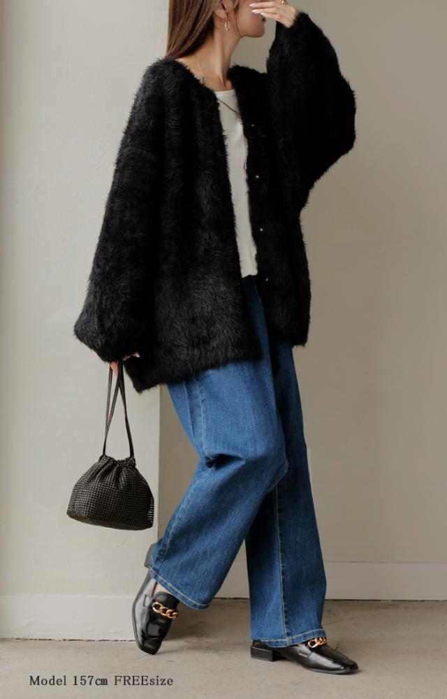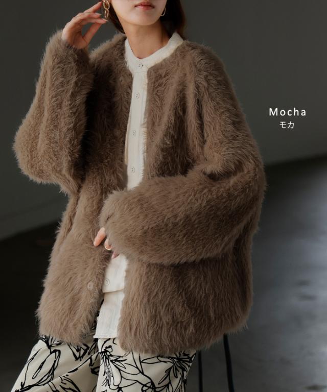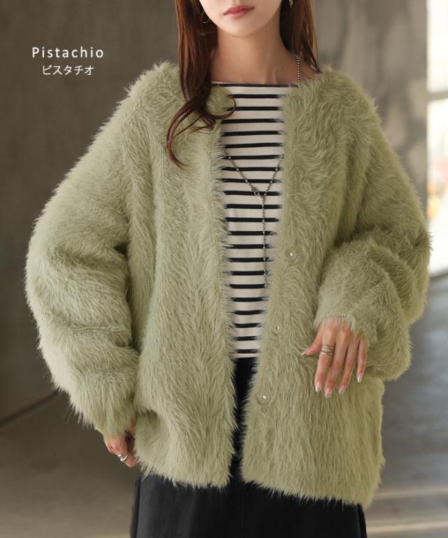 羽織るだけで気分が上がるふわふわフェザータッチのカーディガンです。