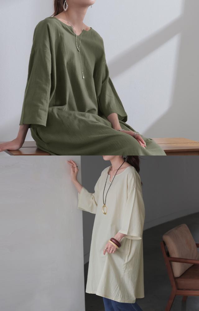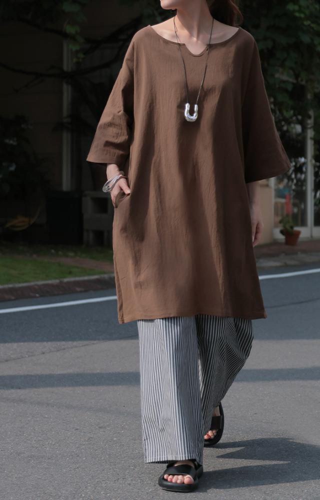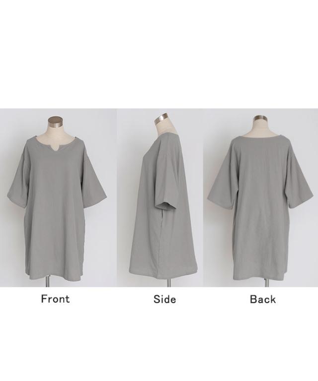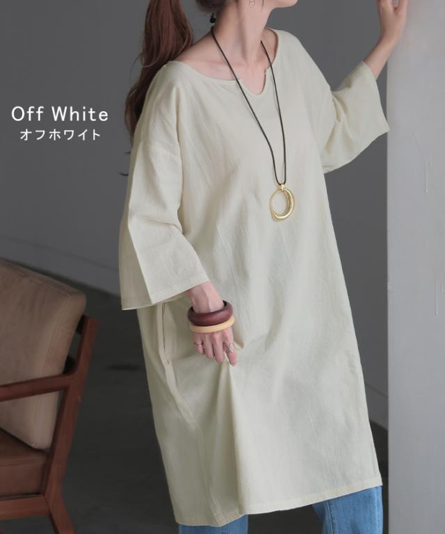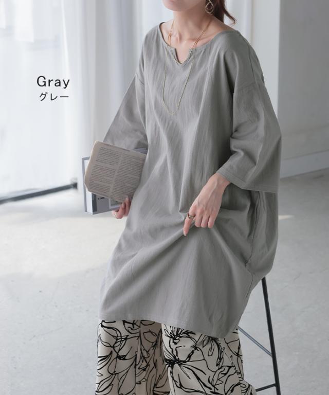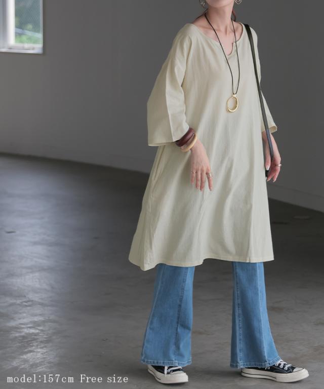 シンプルで着回ししやすいデザインのチュニック丈ワンピースです。