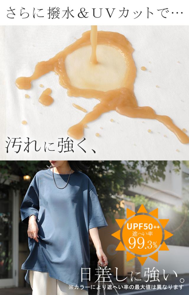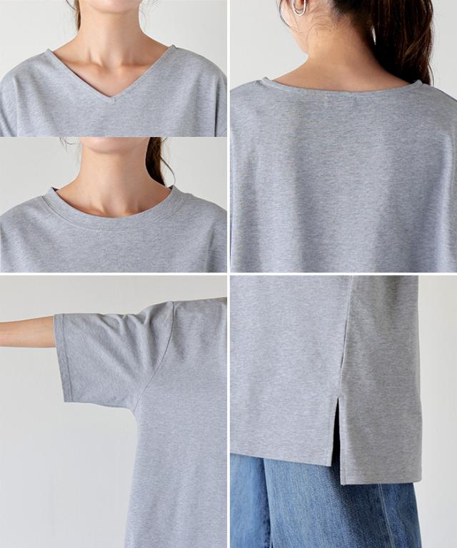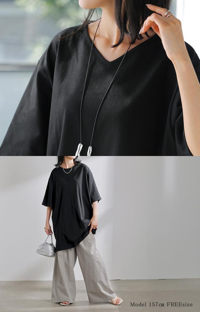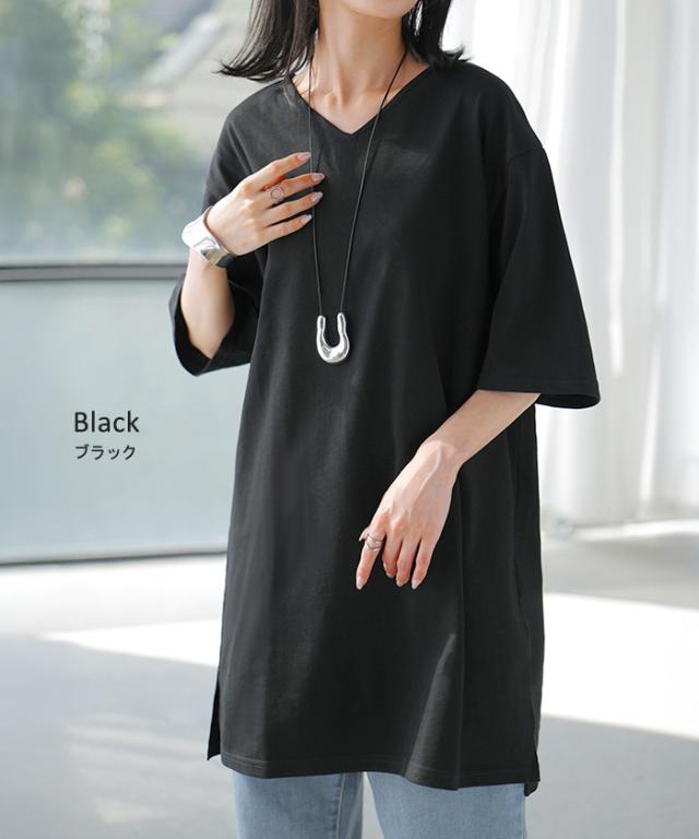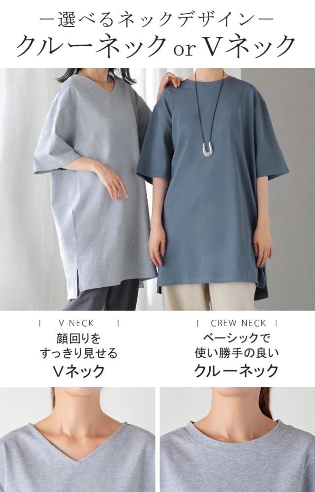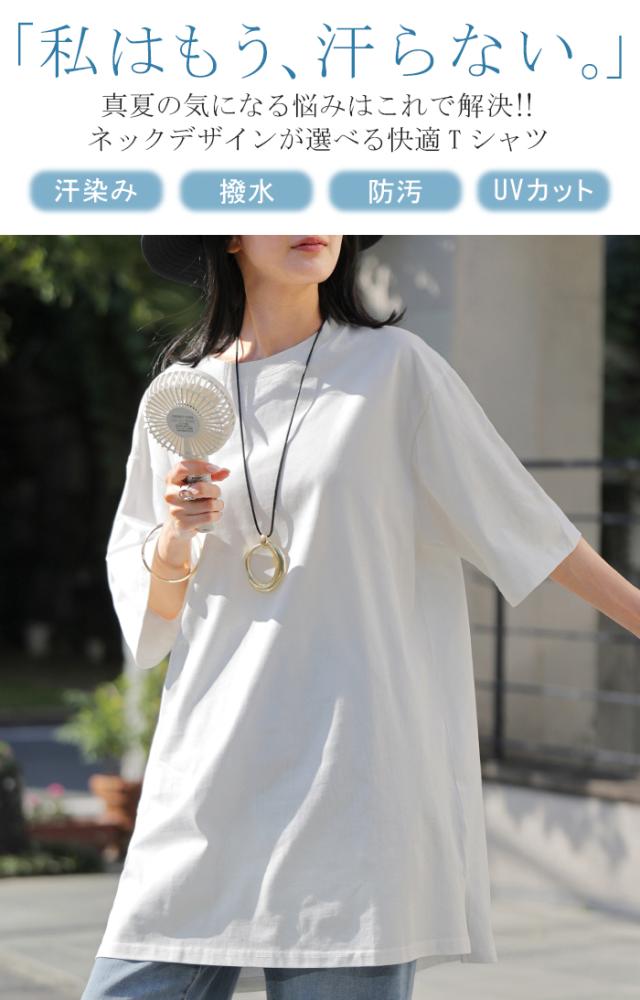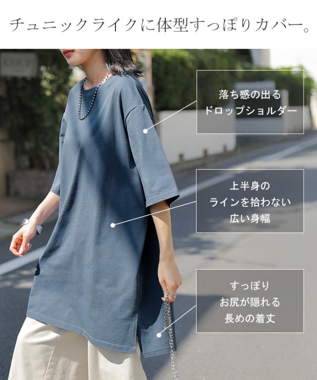 Tシャツ レディース 汗ジミ 軽減 UVカット トップス 半袖 綿100% カットソー ロング ティーシャツ チュニック Vネック Uネック 長い ドルマン ドルマンスリーブ ゆったり 無地 体型カバー お尻が隠れる 大きいサイズ おしゃれ 白 黒 春 夏 HUG.U 秋新作