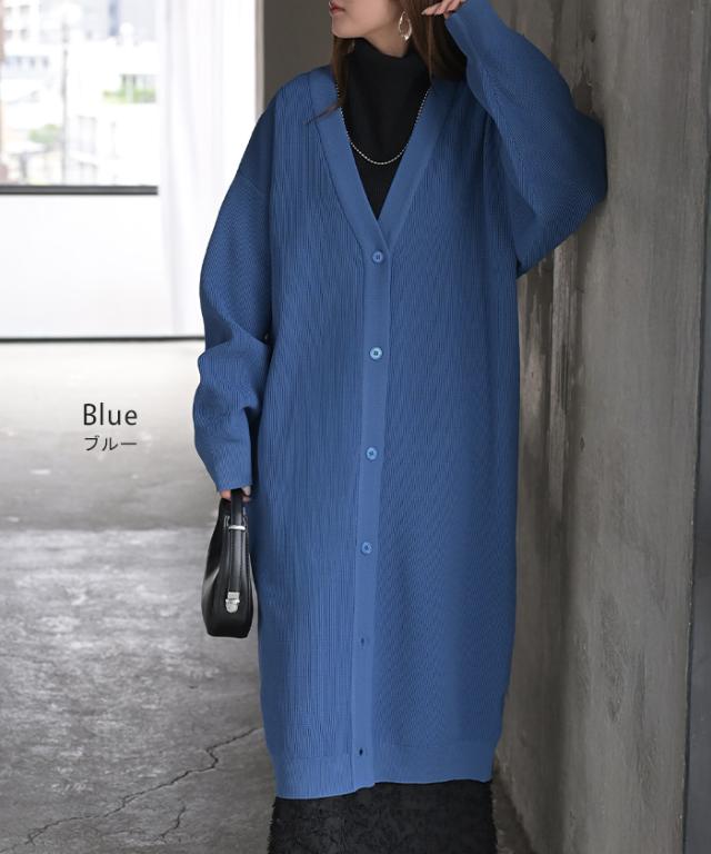 2025AW新作 ニット スポンジニット カーディガン レディース ロング カーデ トップス セーター オーバー プルオーバー ニットカーディガン 長袖 長い 軽い ボリュームスリーブ リブ ゆったり 体型カバー 二の腕カバー お尻が隠れる 黒 青 秋 冬 HUG.U