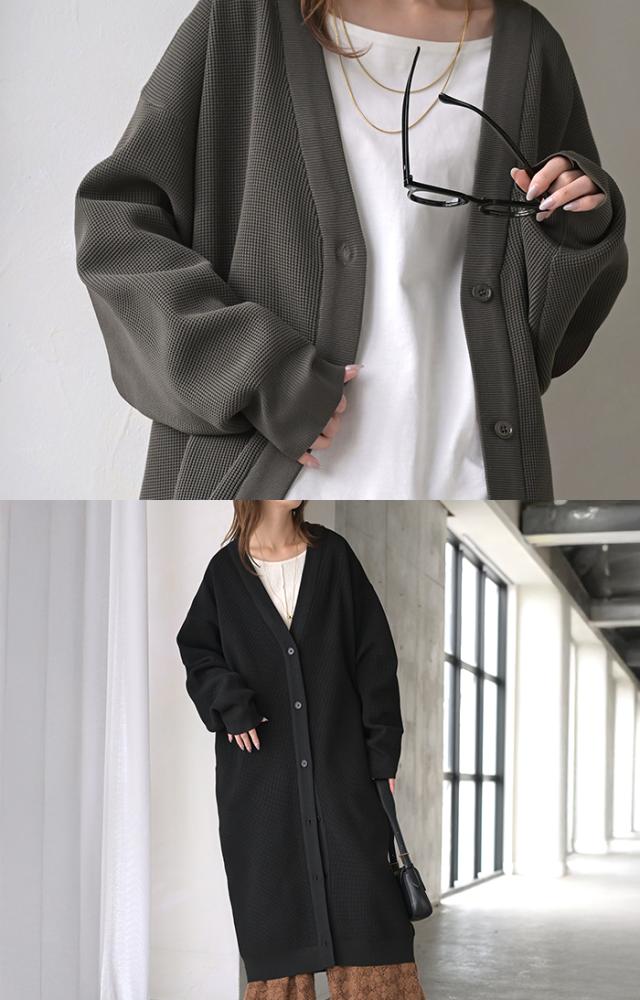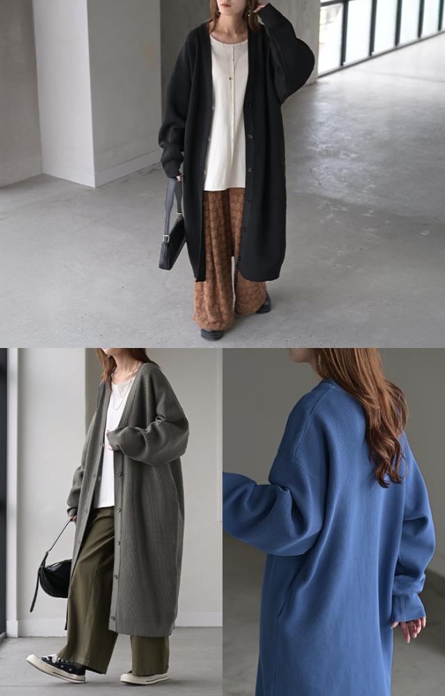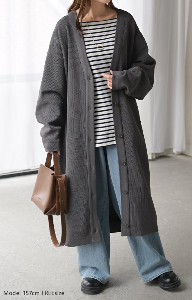 ゆるっとしたオーバーサイズシルエットのロングカーディガンです。