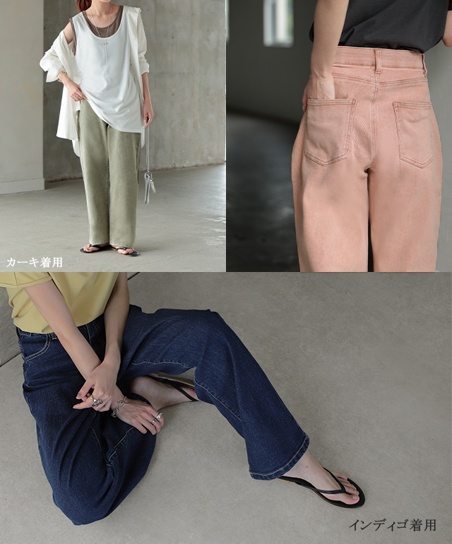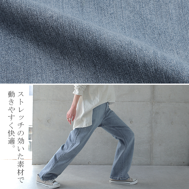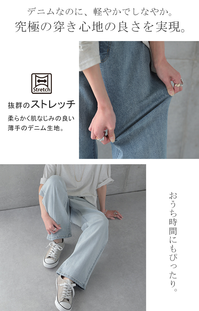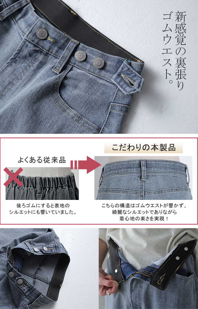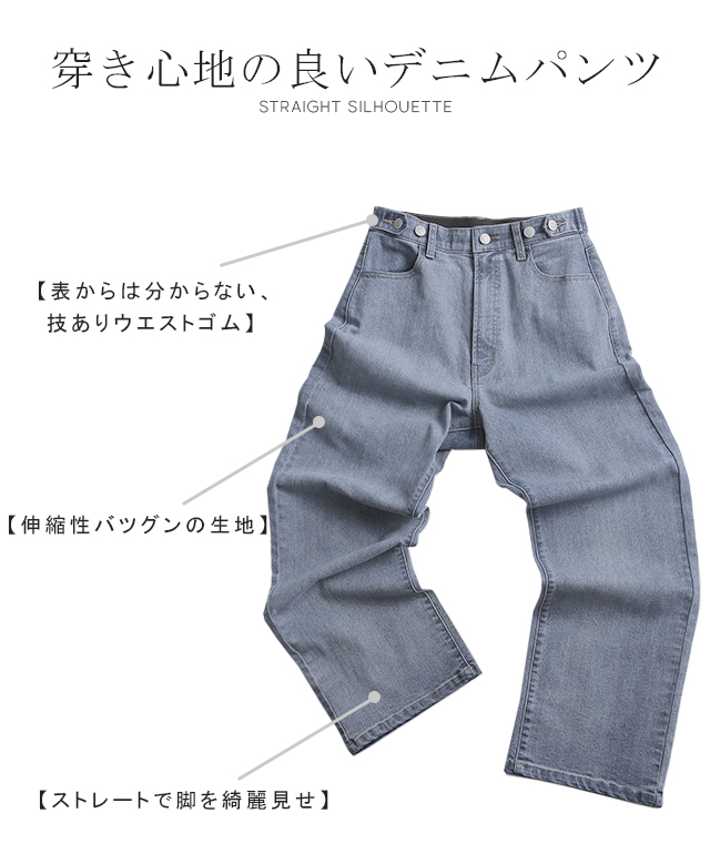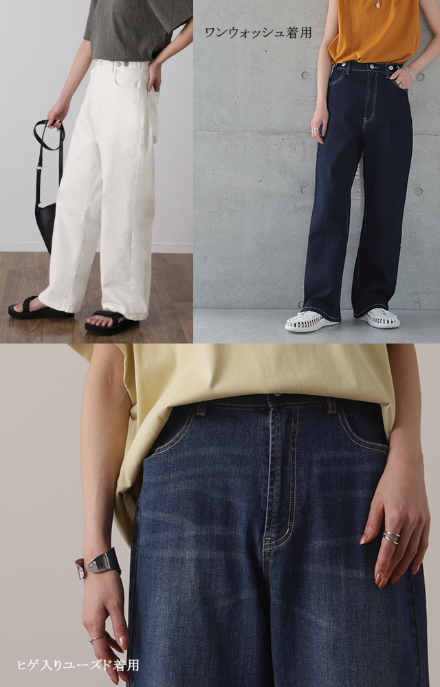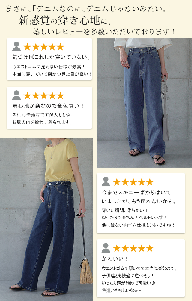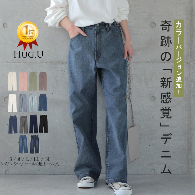 「新 感 覚」穿いていて疲れない デニム パンツ 一部4月上旬入荷 デニムパンツ レディース ワイドパンツ ワイド 大きいサイズ ジーンズ ジーパン ボトム 体型カバー ボトムス ストレート ゆったり ハイウエスト ゴム ストレッチ ハイライズ カラー 春 夏 HUG.U