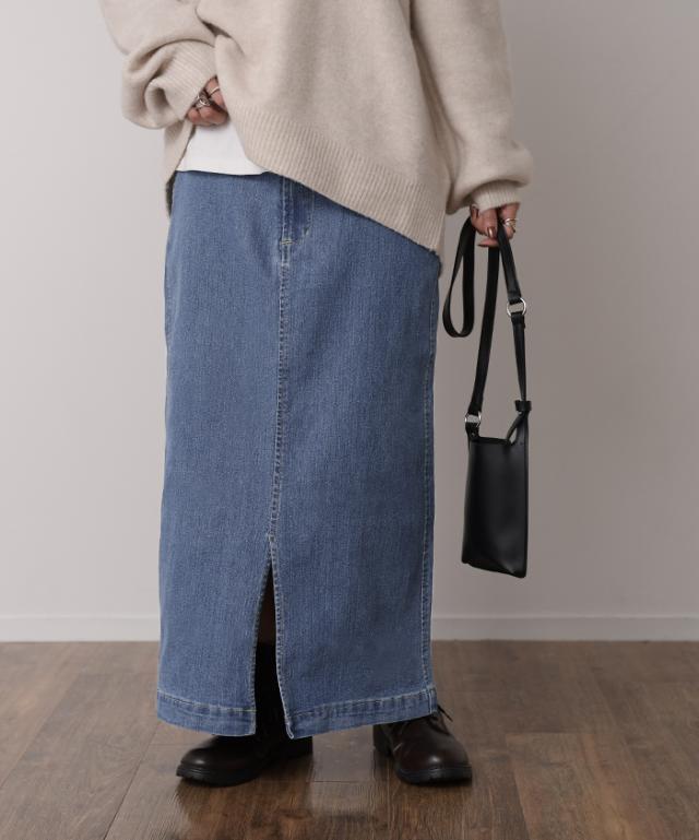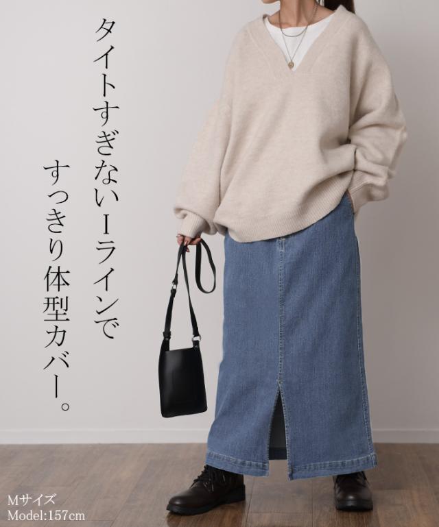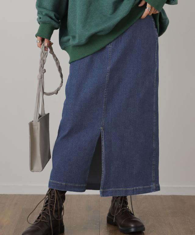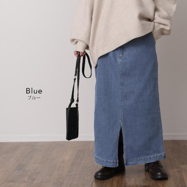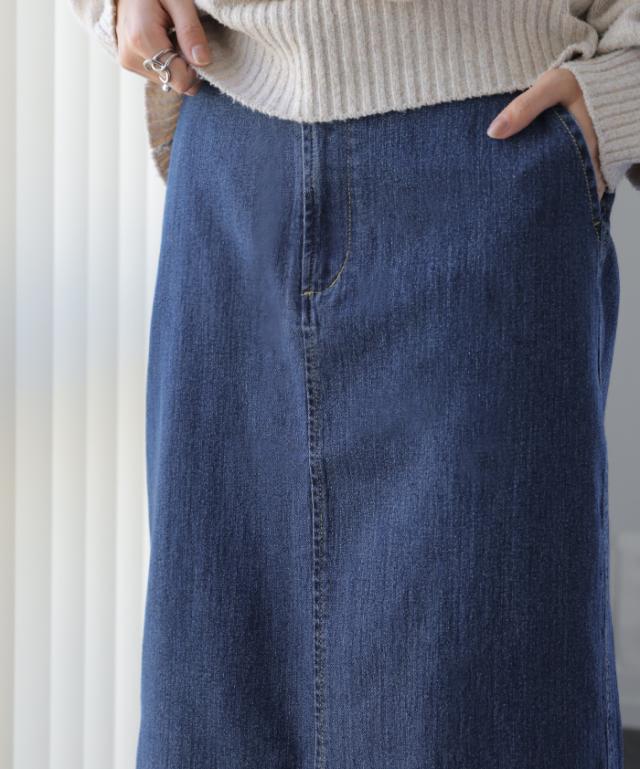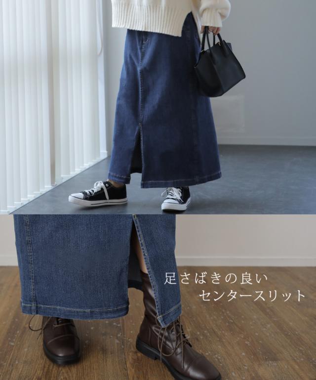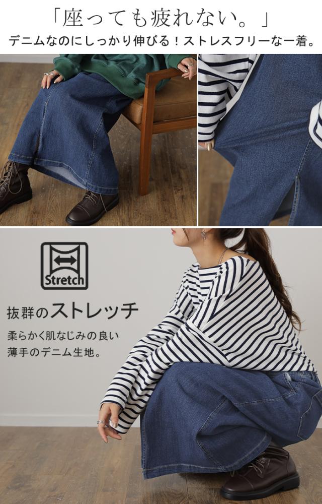 『 しゃがめる デニム 』スカート デニムスカート レディース ボトムス ロングスカート マキシ丈 マキシスカート ストレート ペンシルスカート スリット スリットスカート ロング ミモレ タイト きれいめ ゴム 大きいサイズ 体型カバー 冬 秋 HUG.U 秋新作