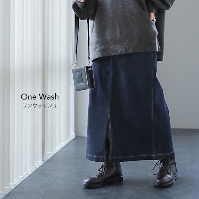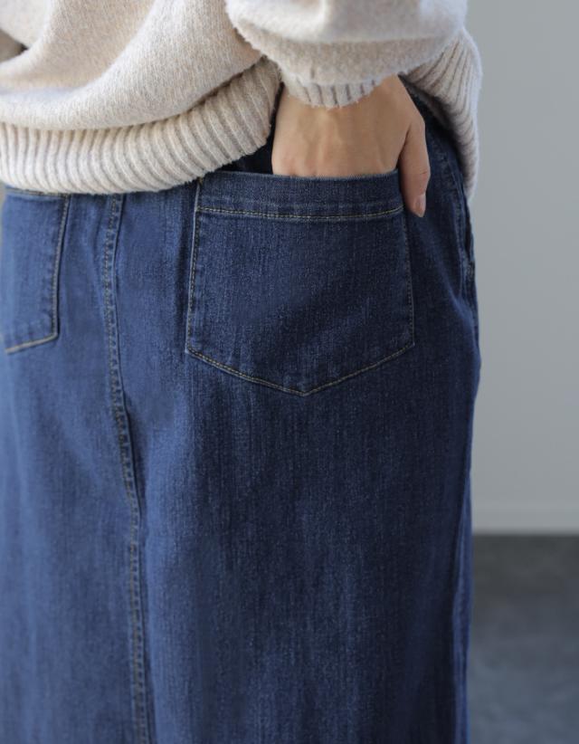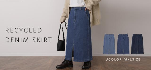 環境に優しいリサイクル『サスティナブル』デニムを使用したセミロングスカートです。