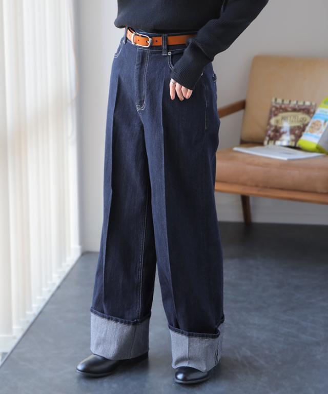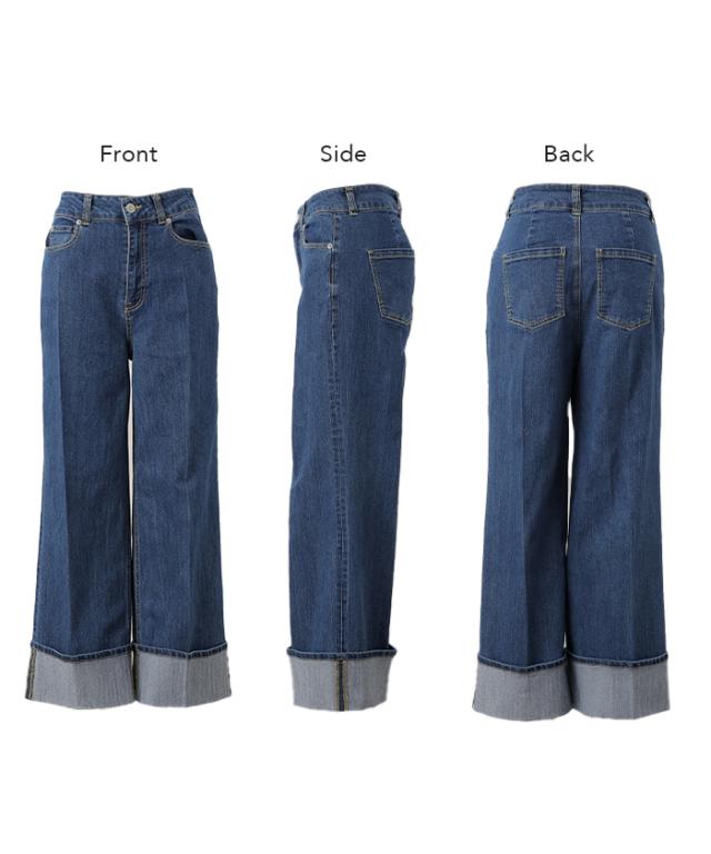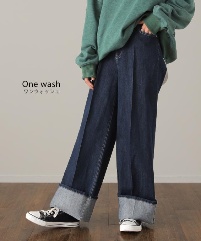 ワイドながらセンタープレスで美脚を作り出すデニムパンツです。