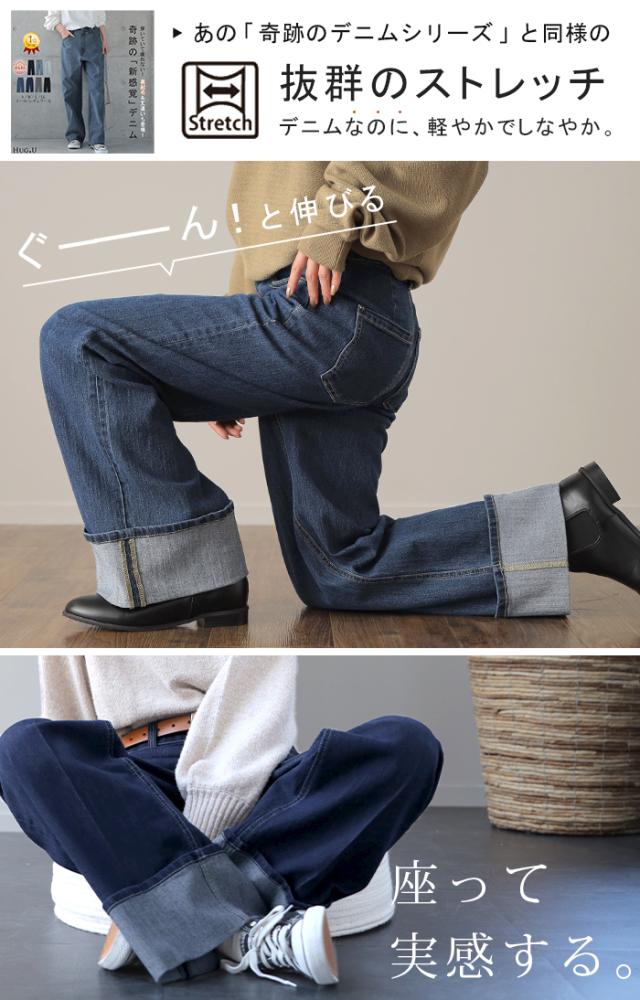 穿いていて疲れない 新感覚 新感覚デニム 新感覚ボトム ストレッチ センターライン ストレッチ素材 ステッチ ストレッチデニム ストレッチパンツ リサイクルデニム リサイクル サステナブル サスティナブル ゆったり エコ エコ活動 ボックスシルエット センタープレス仕様 ロールアップデニム ロールアップワイドパンツ ロールアップワイドデニム センタープレスデニム センタープレスワイドデニム ボーイフレンドデニム ユーズド風 ストレートデニム ストレート リラックスパンツ リラックスデニム ボーイフレンド ボーイズデニム ロング 長ズボン 長ずぼん ずぼん ズボン デニムワイドパンツ デニムワイド ボタン ファスナー YKK YKKファスナー バギーデニム バギーパンツ バギー 大きいサイズ対応 プラスサイズ 大きい 大きめ 小さいサイズ 美脚 脚長 脚長効果 スタイルアップ ロングパンツ ロング 太め 小尻 小尻パンツ 無地 ルーズ ハイライズデニム ハイライズパンツ ハイウエストデニム ハイウエストパンツ ウォッシュ ウォッシュデニム ヴィンテージ加工 ユーズド加工 ユーズド ユーズドデニム ポケット ヴィンテージ ビンテージウォッシュ ワンウォッシュ 紺 紺色 濃紺 インディゴ ユーズドブルー ブルー デニムブルー ユーズドネイビー ネイビー 青 青色 ラクチン らくちん 楽ちん 楽 動きやすい ストリート カジュアル アウトドア キャンプ 着回し 優秀パンツ 毎日パンツ ほどゆるパンツ ゆったりサイズ ゆる すっきり レディースファッション 高身長 170cm 長い 長め 旬 トレンド レイヤード 重ね着 重ね レイヤードコーデ 体型カバー 大きいサイズ プラスサイズ ビッグ ビック big ビックシルエット ビッグシルエット ビックサイズ ビッグサイズ オーバーサイズ オーバー 着痩せ 大き目 大きい 大きめ フリーサイズ フリー S M L LL 2L XL 3L XXL LLL デート お出かけ フェス リゾート ビーチ 海 旅行 飛行機 カジュアル ナチュラル 大人カジュアル ベーシック オフィス オフィスカジュアル テレワーク リモートワーク リモート オンライン飲み会 おうち時間 お家時間 着回し 母の日 プレゼント ギフト 贈り物 クリスマス シンプル 大人 大人カジュアル オトナ 女性 綺麗 綺麗目 きれい キレイ キレイめ キレイメ きれいめ 高見え 上質 上品 20代 30代 40代 50代 おしゃれ お洒落 オシャレ 可愛い かわいい カワイイ カッコいい 格好良い カッコイイ 春 夏 秋 冬 春夏 秋冬 HUG.U HUGU ハグユー はぐゆー