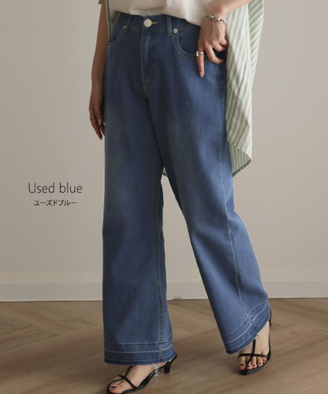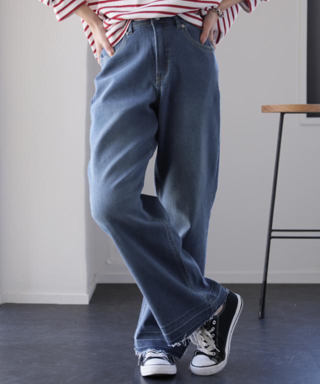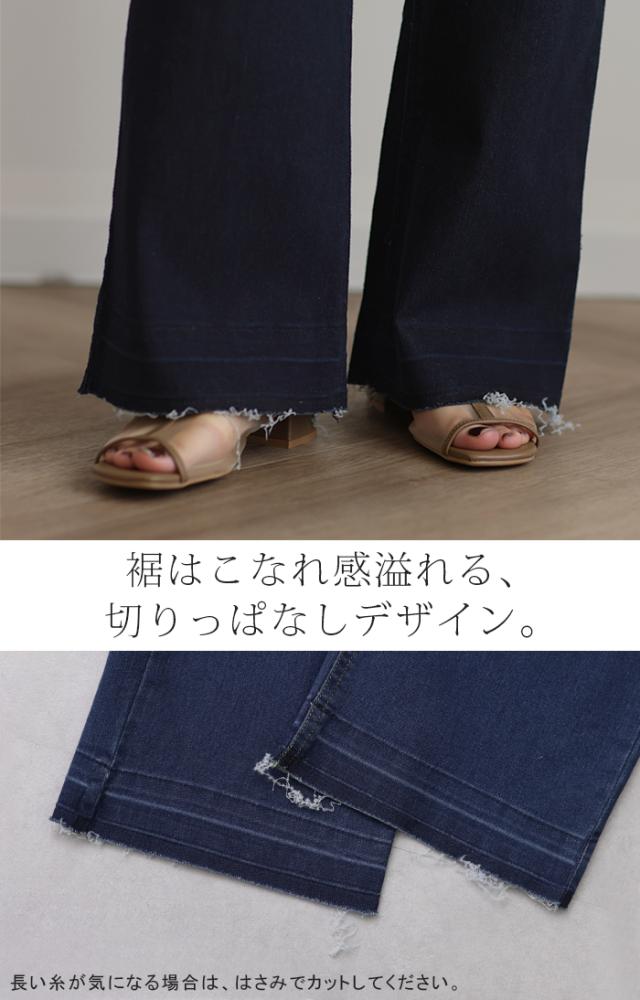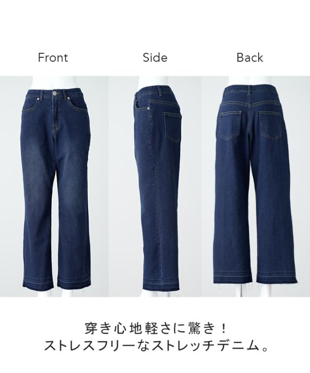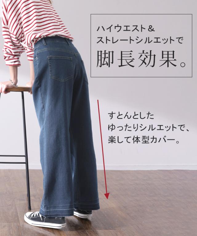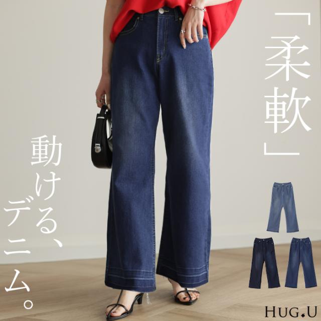 切りっぱなし「 柔。」 デニム バギー パンツ ハイライズ デニムパンツ ストレートパンツ ワイドパンツ ワイド 大きいサイズ ジーンズ ジーパン ボトム 体型カバー ボトムス ストレート ズボン ゆったり ハイウエスト ストレッチ 美脚 冬 秋 HUG.U 秋新作