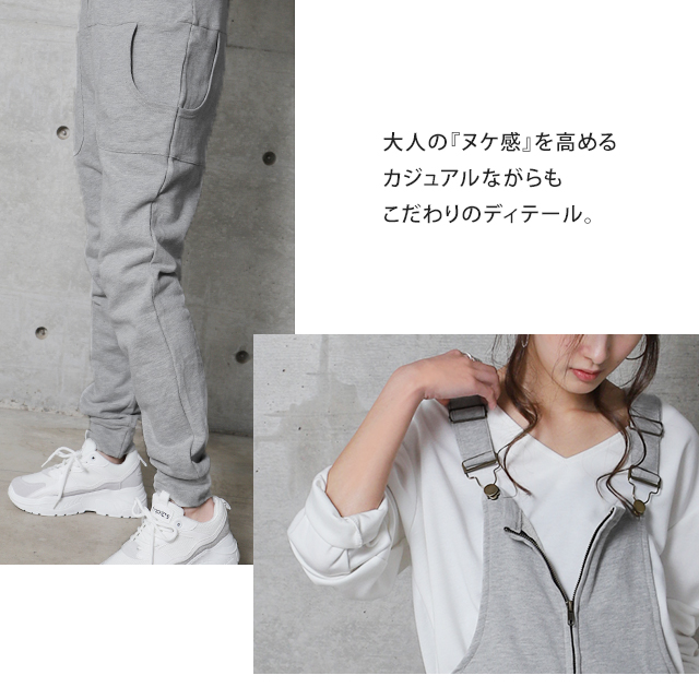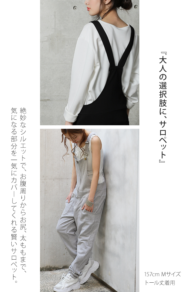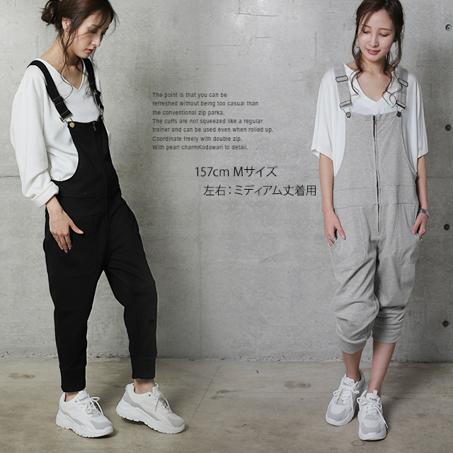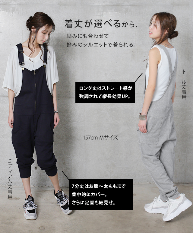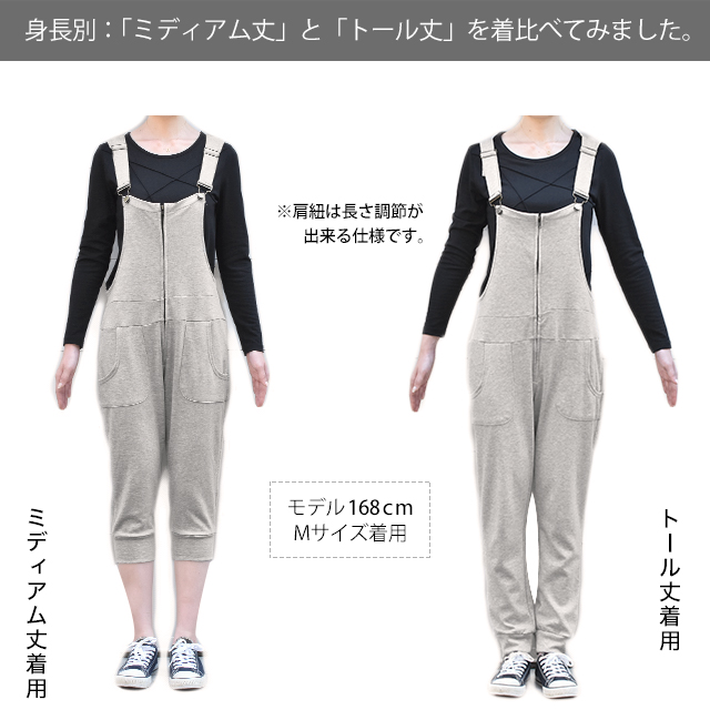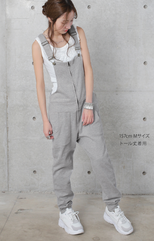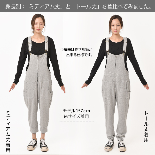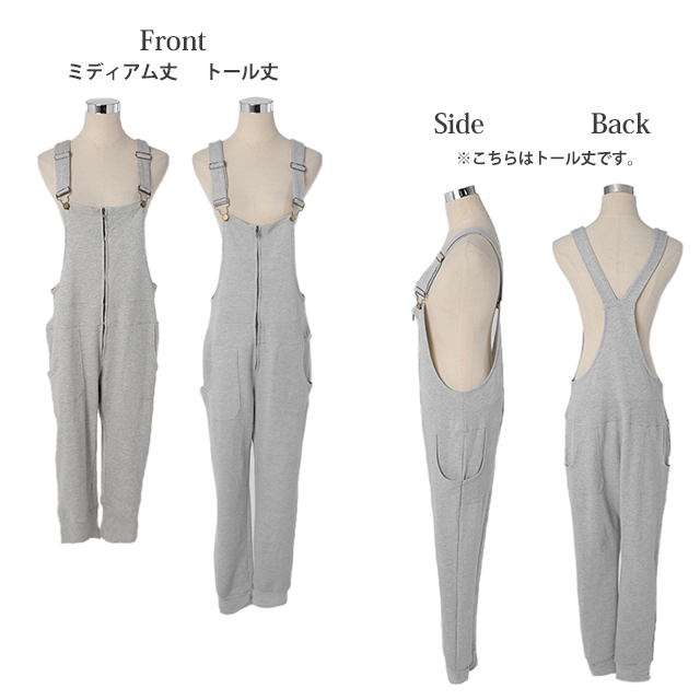 スウェットオールインワン。トール丈とミディアム丈の2タイプからお選び頂けます。