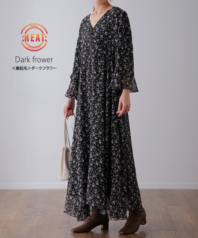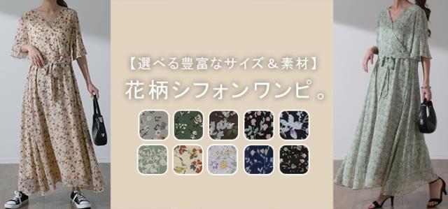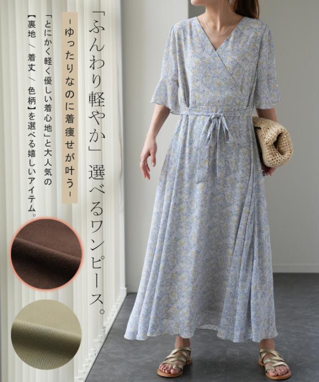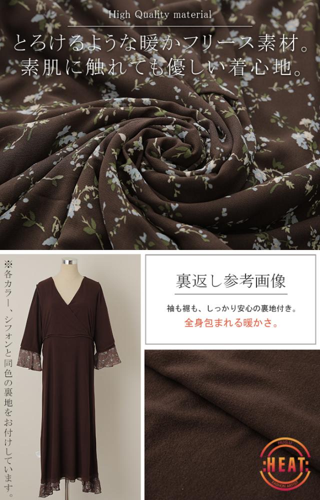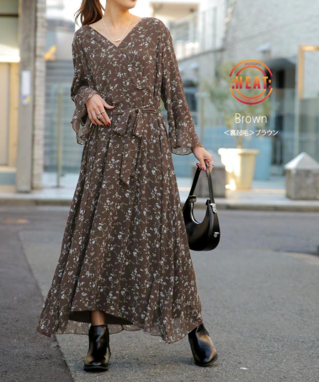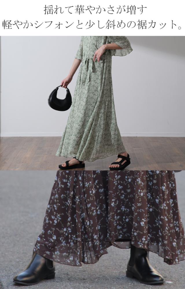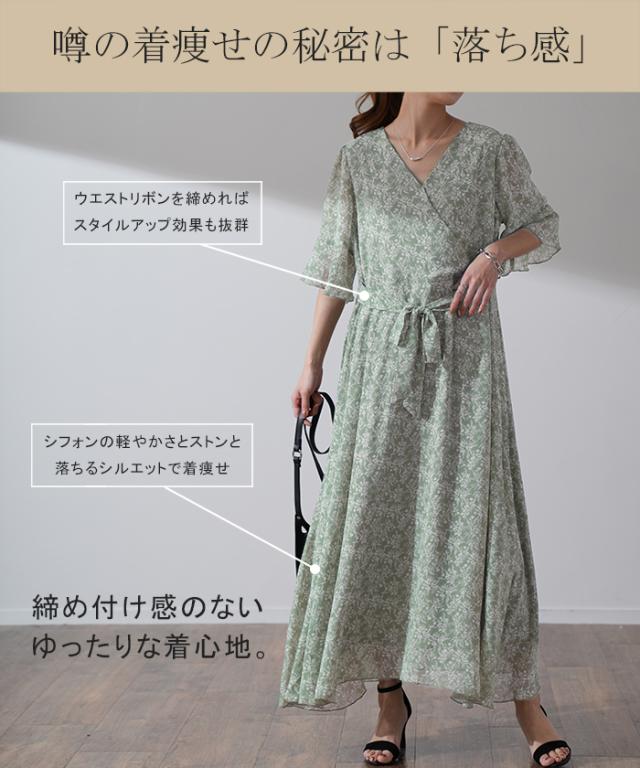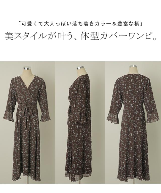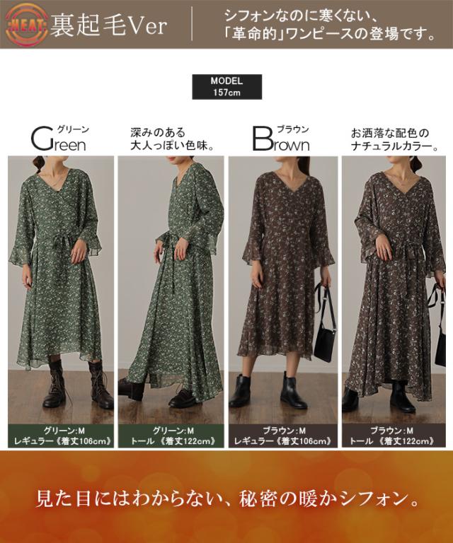 選べる!「 着痩せ」 シフォン ワンピース 一部3月中旬入荷 シフォンワンピース ワンピ レディース ロングワンピース 長袖 半袖 裏起毛 きれいめ 体型カバー 花柄 あったか ロングワンピ ロング 大きいサイズ 小花柄 マタ二ティ Aライン 冬 秋 HUG.U 秋新作