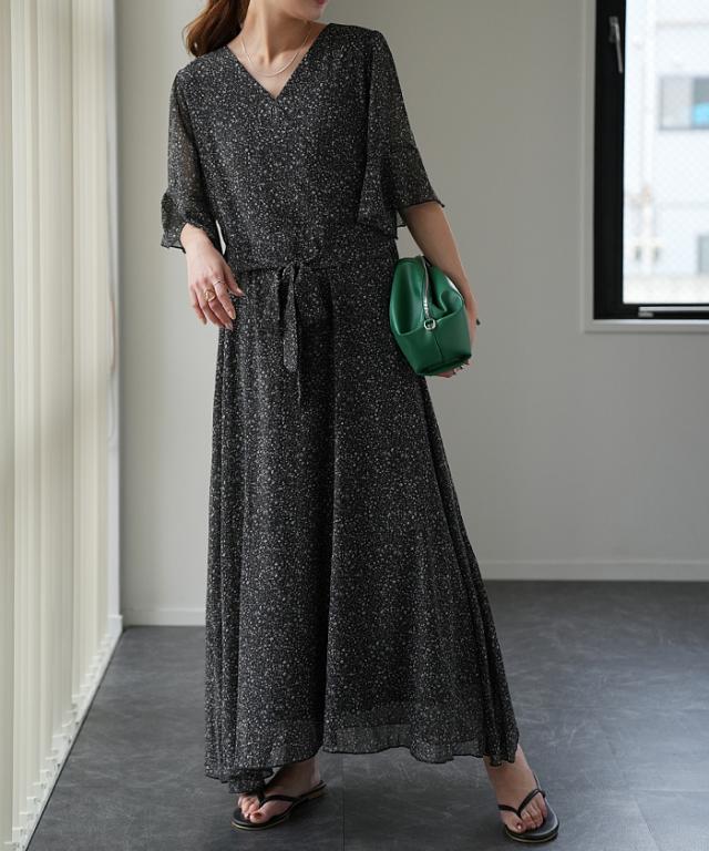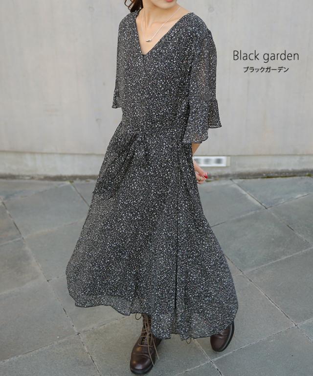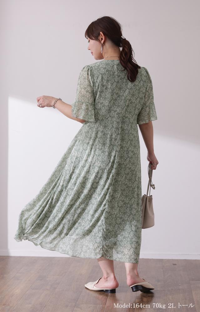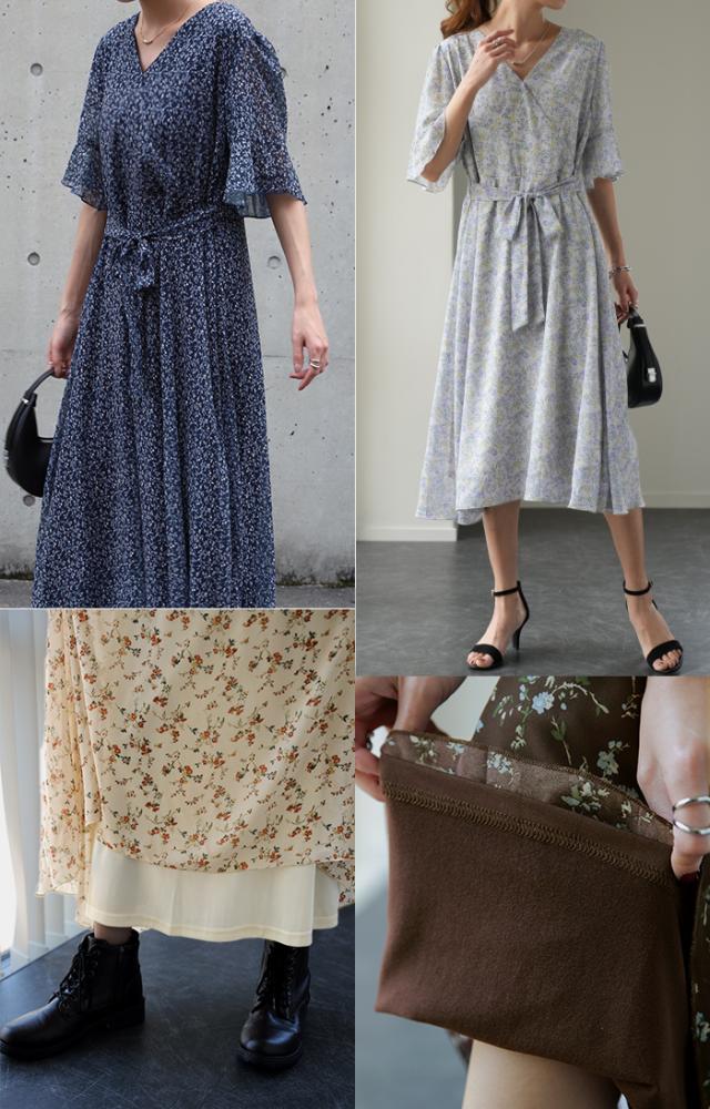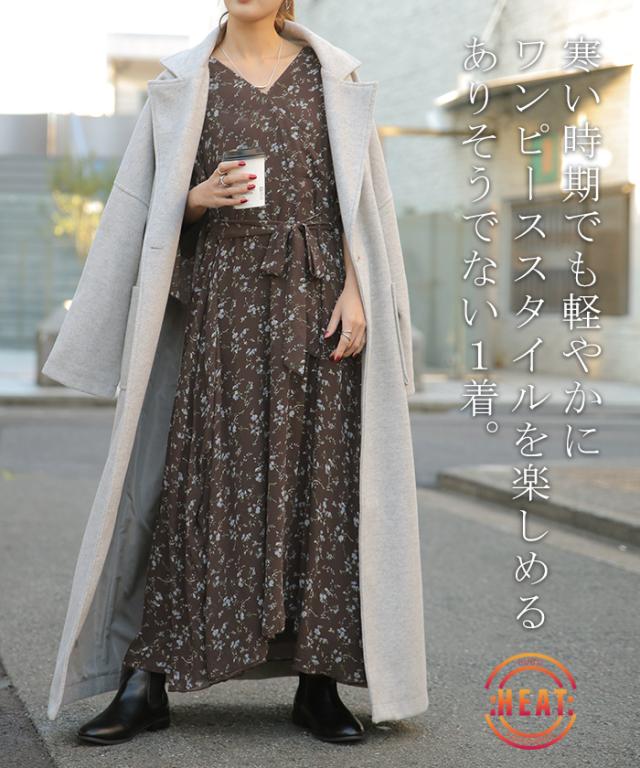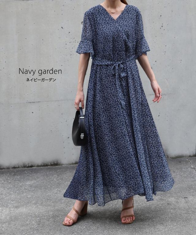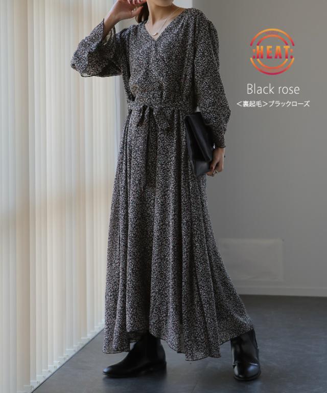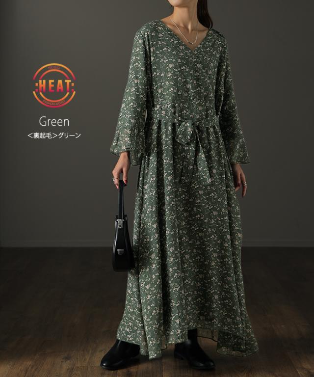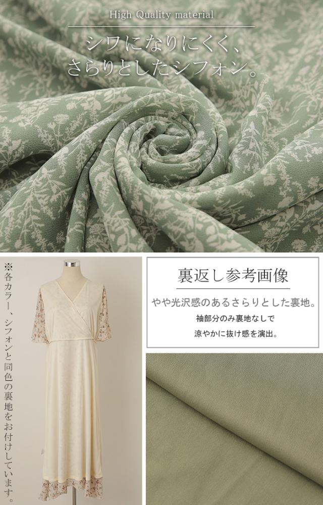 選べる!「 着痩せ」 シフォン ワンピース 一部3月中旬入荷 シフォンワンピース ワンピ レディース ロングワンピース 長袖 半袖 裏起毛 きれいめ 体型カバー 花柄 あったか ロングワンピ ロング 大きいサイズ 小花柄 マタ二ティ Aライン 冬 秋 HUG.U 秋新作