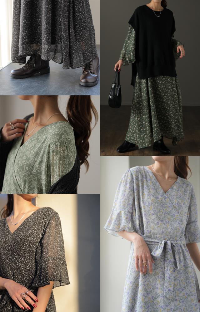 落ち着いた色味だけど総柄で女性らしい印象です。